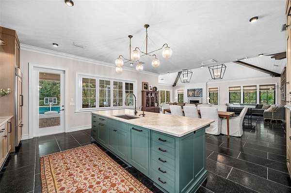 Remodeled by local custom builders, the home features impeccable craftsmanship and high-end custom details throughout, reflecting remarkable attention to fit and finish. The main residence includes four spacious bedroom suites, all en suite, along with 5.5 bathrooms.