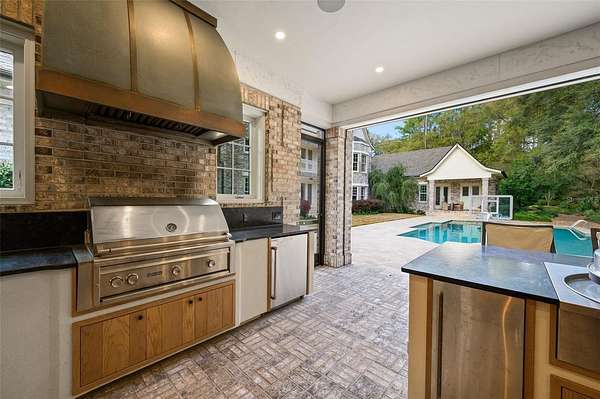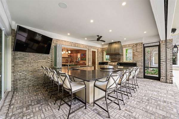 Adding tremendous value and versatility to the property is a newly constructed 2,100-square-foot detached guest house. This luxurious residence offers two bedrooms (one BR is currently used as a GYM with rubber mat flooring), one bathroom, a spacious living room, and a full high-end designer kitchen with premium finishes. Perfect for guests or extended stays, the guest house also features a large summer kitchen with motorized screens, creating a seamless indoor-outdoor living experience that flows beautifully to the resort-style pool area. With its designer finishes, spacious layout, and luxurious feel, this guest residence functions as a private retreat within the estate.