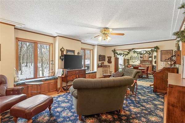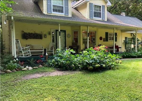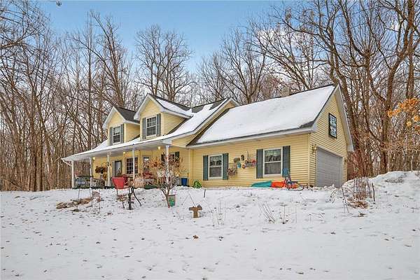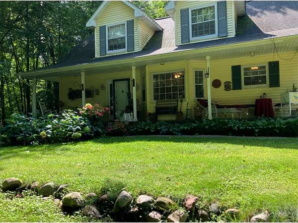 Farmhouse set on nearly four private acres, blending timeless character with effortless country elegance. The property features a thriving small vineyard, and mature maple trees that produce an abundant supply of maple syrup each season, as well as apple trees. Sun-filled living spaces offer warmth and comfort, while a charming cabin--relocated from a former Anoka motel --adds a unique storage shed or creative space with a story of its own. Lovingly maintained by the original owners, this special property offers privacy, personality, and the beauty of rural living just minutes from everyday conveniences.