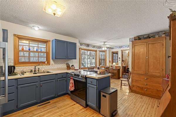 Hardwood flooring is 1890 original flooring from a church in Bena MN. Come check out a property you will want to call home!