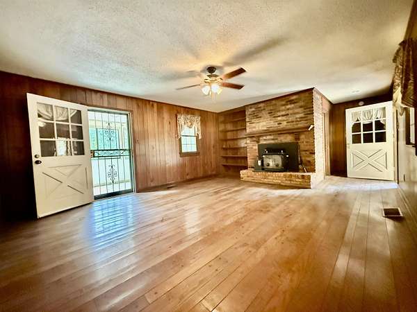Spacious 4BR/3BA home situated on approximately 5 acres with pond (option to purchase as part of a larger 185+- acre tract). This home offers new roof, nicely shaded yard, circle drive, carport, garages, porch then moving inside to spacious living space. Entry hall and great room with hardwood floors. Wood burning stove. Sunroom. The primary ensuite on the main level, complete with a tub/shower combo, plus 2nd bedroom. Upstairs features two additional bedrooms, each with attached bath, and bonus room, providing plenty of space for family or guests. The home includes a walkout unfinished basement offering endless potential for expansion, storage, or recreational space. While the property may need some updating, it presents a wonderful opportunity to customize and create your dream home in a serene, private setting--a rare find with versatile possibilities!