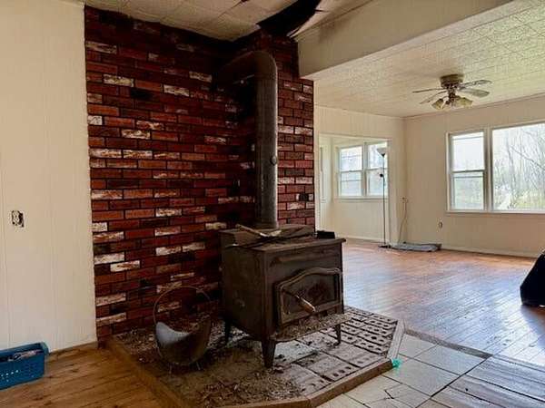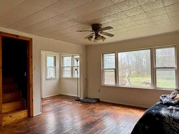 Est $1,017/moCountry Farmhouse situated on 40 acres, home offers 3 bedrooms, 1 bath, large family room, Wood stove and baseboard heat, drilled well and a storage shed. 40 acres is mostly wooded with county road frontage on 2 sides
