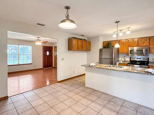 This charming lake home in Jennings, Florida, features a new metal roof and is nestled in Hamilton County. The property includes a cozy family room, dining room, breakfast area, and a large island kitchen with granite countertops--perfect for entertaining.