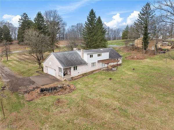 Welcome home to this inviting and spacious 3 to 4 bedroom, 2.5 bath property nestled on 4.18 peaceful acres in a picturesque country setting. Offering 2,928 square feet of finished living space, this home provides room to relax, entertain, and truly enjoy both indoor and outdoor living. A grand oversized entry welcomes you inside and opens to a stunning living room highlighted by soaring vaulted ceilings that create a bright, open feel. The eat-in kitchen is perfect for everyday meals and flows effortlessly into the formal dining room, ideal for hosting family gatherings and holidays. A newly remodeled half bath adds convenience on the main level. The first floor features a comfortable primary bedroom with double closets and a rough-in for a future en-suite. A second main-level bedroom showcases beautiful oak hardwood flooring and is located near freshly renovated full bath. Upstairs, you will find a private third bedroom with its own updated full bath, complete with a new shower, toilet, and new flooring. An additional flexible space offers the option of a fourth bedroom, home office, or guest room. The lower level adds even more living space with approximately 700 square feet of finished basement, featuring a retro-style fireplace with sunk in seating and bar area that is perfect for entertaining or cozy nights in. Outside, enjoy a scenic and mostly flat backyard surrounded by nature, offering peace, privacy, and endless possibilities for outdoor enjoyment and mostly flat yard. Additional highlights include a new 200-amp electric panel, a 2.5-car garage with heat, running water, and a whole-home wood-burning source, plus abundant storage in the garage and walk-in unfinished attic. Lovingly cared for by one family, this home is ready for its next chapter. An additional 2-acre parcel across the street is available for purchase if more acreage is desired. Do not miss this rare opportunity! Mineral rights do not transfer.