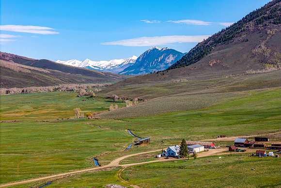 Roaring Judy Ranch is a 455+- acre property located in the East River Valley near Crested Butte, offering a combination of productive ranchland, significant water rights, and diverse wildlife habitat. The ranch includes extensive irrigated acreage supported by 75 c.f.s. of decreed water rights, ensuring year-round irrigation. Existing improvements include a three-bedroom residence, a horse barn, historic log hay barns, loafing sheds, corrals, a 2,400+- square-foot equipment workshop, and 12 additional outbuildings. The property falls within Game Management Unit 55, supporting populations of elk, mule deer, moose, and black bear. A conservation easement is in place, maintaining the integrity of the land while allowing for controlled development within a three-acre building envelope along Roaring Judy Creek and a ten-acre envelope, providing the potential for up to three additional residences. Roaring Judy Ranch presents an opportunity for those seeking a well-established agricultural operation, a hunting property, or a long-term land investment in a region where reliable water resources and productive acreage hold enduring value.