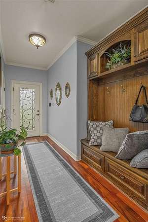Inside, you are welcomed by a charming entry foyer with built ins that adds both character and functionality. The large kitchen is designed for both everyday living and entertaining, featuring abundant counter space, a pantry, and a breakfast bar with eat in kitchen seating.