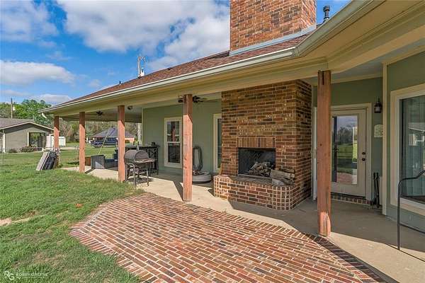 Additional outdoor features include a brick fireplace area, a fenced yard, and a double door detached garage that provides extra storage and workspace. With over two acres of land, this property offers plenty of room to spread out while still enjoying the comfort of a well designed home.