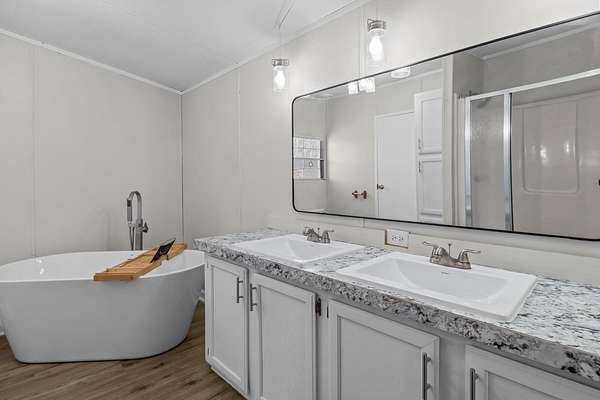 Step inside and you'll love the brand-new LVP (luxury vinyl plank) flooring, fresh paint throughout, new light fixtures, updated faucets, and stylish new laminate countertops. The kitchen shines with brand-new appliances, making it ready for family dinners and entertaining. The bathrooms have been refreshed, including a relaxing new soaker tub -- perfect for unwinding after a long day.