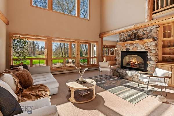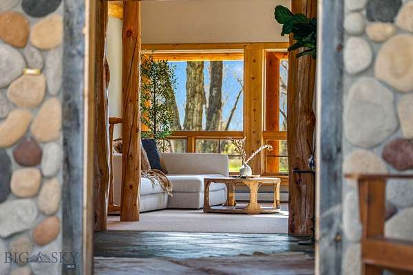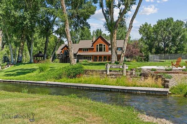 This End-Of-Road, Park-like and Private River Property will blow you away!! Situated on 23+ Acres with direct Gallatin River Frontage, Baker Creek Overflow (Moreland Ditch) & borders 346 ACRES OF STATE LAND. Explore, Ride, Hunt, Fish to your hearts content! This property has it all to LIVE your BEST Montana Life. Decompress as you enter your long, private drive through the cottonwoods teeming with wildlife. Extremely, well-built home that takes inspiration from the surroundings with bold river rock exterior and hardboard siding mimicking the natural landscape. The thoughtful layout allows you to live simply on the main level and seems to magically expand when hosting friends/family. Spacious main level primary suite has glass doors to a private patio for peaceful mornings/evenings as you listen to sounds of water while enjoying sunrises/sunsets. Take in the serenity while soaking in the jetted tub under the big picture windows and revel in the beautiful natural light streaming in. Plenty of space with dual vanities, tiled shower & huge custom closet. Walls of windows greet you in the living room bringing nature inside. Anchored by the cobblestone fireplace, the living room connects to the whole house with sightlines to the kitchen, formal entry and lofted upstairs. The kitchen has a large paneled fridge, center island with cooktop, dual wall ovens- ideal for a feast of 12 in the adjoining dining room or for more intimate meals at the bar seating/breakfast nook or Grill on the outdoor patio next to the water feature. Lots of special summertime memories in store while living here! Enjoy playing yard games, shooting hoops, a fire in the firepit next to the live water or fish the Gallatin. Watch the kids shoot the ditch on their innertubes or play on the sandy beach. When guests visit, the upstairs is perfect for hosting with 3B|2B, expansive family room with fireplace & wetbar/kitchenette plus an extra bonus room for pool table/ping-pong which has access to the backyard, hot tub gazebo, and basketball court. 1B|1B separate ADU adds even more guest space above the detached shop/RV BARN! Come ride your horses on the State Land, fish & float the Gallatin River, BBQ and Firepit in the backyard, summer tube on the ditch, hunt abundant morel mushrooms in the spring, or nature watch on this VERY RARE and HARD to FIND RIVER property! Seller is open to partial owner financing.