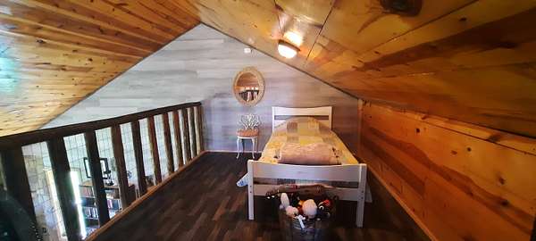 Escape to the countryside with this inviting 2 bedroom cabin featuring a cozy sleeping loft and a host of charming features. Set on 2.1 picturesque acres, this home offers the perfect blend of comfort, functionality, and rustic charm. Step inside to find a spacious kitchen ideal for home cooking or entertaining, good sized bathrooms, and a separate dining area perfect for family meals or gatherings. Large windows throughout fill the space with natural light and offer peaceful views of the surrounding landscape. Enjoy your morning coffee or an evening sky from the covered front porch, or relax in the side porch, complete with screens or windows to suit 3 seasons. The upstairs has a unique passageway with built in storage connecting the bedroom to the sleeping loft. The property is ideal for animals or gardening, and includes a charming red barn full of character and potential. Whether you are dreaming of a hobby farm, a weekend getaway, or a full time country home, this property has something for you! All this just 25 minutes from London offers the perfect balance of rural tranquility with the convenience of town. Don't miss this rare opportunity! Schedule your showing today.