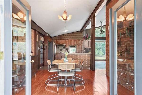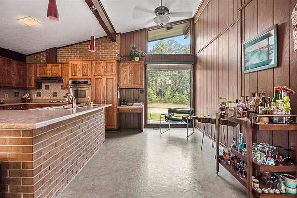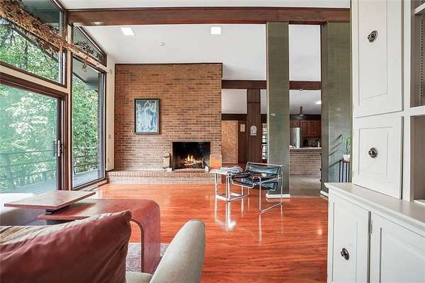 A Midcentury (Manchester) Time Capsule...we don't limit ourselves to only the fabulous Midcentury homes in ATL. We go to where the good-good is, and this time that search for the good-good took us to Manchester GA. You say you don't know where Manchester is? Well, read on my friend bc you will soon find yourself wishing you were already there. Built in 1968 and owned by the same couple for nearly 60 years, this beautiful residence is the textbook definition of pure, unadulterated, classic MCM architecture. Perched at the top of a secluded hill & built into the base of Pine Mountain Ridge, living here feels like living in North Ga Mountain country. Vistas of deep valleys, green pastures, & mountain views cradle the town of Manchester and make for some of the best hikes anywhere in GA. You think you've seen it all before, but this one is different. As you approach the property you notice the handmade zig-zag wooden fence bordering the yard. 624 is the ONLY home on the block & in the Fall & early Spring, you will be rewarded with the most fiery yellow-orange sunset views as the day turns to dark and the mountain ridge in the distance frames the setting sun. Rugged Post & Beam construction, the most *perfect* color of tannish-brown brick, & walls & walls of glass beckon you to park the car, get out, & come inside. THE ENTRY IS TO DIE FOR. Vintage wrought iron double gates open onto solid wooden double doors....opening these doors is like walking into another decade, a better life, & a new experience. A split-level wooden staircase leads you either down into a huge den/rec room with a bar & indoor grill, or up into the living room & the views you've been dreaming for every night as you search IG for your dream home. A full wall of glass, with sliders, draws you thru the living room & out onto the cantilevered deck where you realize you're 20 feet higher than your nearest neaighbor's roofline & you have COMPLETE privacy. It's possible you were so drawn to the views that you missed :: the brick wall punctuating the room which houses the minimalist fireplace, the built-in media cabinet, the new floors, and the *oh so perfectly patinated* vintage grasscloth wallpaper. The dining room, kitchen, and primary bedroom all afford you the exact same gorgeous views. The bathrooms. Not just one, but three & a half original tile baths, each one lovingly preserved: primary bathroom. IT. IS. HUGE. Walk-in shower, soaking tub, double closets, vaulted ceiling, this house had it all, decades before it circled back into style. The primary bath is literally larger than most primary bedrooms. Not even one hand-laid vintage square tile is cracked and not one single piece of grout has been lost. Two downstairs baths are equally perfect & the fixtures shine & gleam like they were installed just yesterday. Nothing cracked, nothing broken. Just pure midcentury design. What about the outside? Just as incredible. 1.5 acres. A covered porch off the kitchen. A full size workshop designed in the most fabulous Southern Gothic vernacular. Native azaleas, Japanese maples, rhododendron, poplar, oak, & ginkgo trees create the most inspiring landscape. The best part...a natural spring bubbles out of the ground and it feeds the most lush & beautiful ferns & ginger root plants that you have even seen. The next door neighbor ( whom you can't see) maintains 8+ acres of forest & tends it like a nature preserve. For 1/3 the cost of a North Ga Mountain retreat, you could own a 3BEDx3.5BATH, 3000+/- SQFT home, located less than 2 hours from ATL. A 12 minute drive to FRD's Little White House. 33 minute drive to Callaway Gardens. 22 minutes or less to the Flint River. 1 hour to Hartsfield Jackson ATL airport. Creeks, springs, hiking trails, and outdoor options all at your fingertips. There are so many details to experience. If you're curious (I know you are), come visit. It will be worth the drive. You will love it.