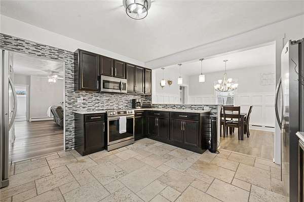 Welcome to this beautifully updated 4-bedroom home in desirable Unity Township, offering space, functionality, and endless possibilities on 6 scenic acres. Inside, the home features a thoughtfully designed layout with main-level laundry, a full bathroom on the main floor, and an additional full bathroom upstairs for convenience. The newer walnut-stained kitchen showcases granite countertops, stainless steel appliances, a side-by-side refrigerator, and an additional stand-up freezer, creating a stylish and highly functional cooking space. Throughout the home you’ll find luxury vinyl plank flooring and ceramic tile, solid wood doors, and beautiful custom woodwork, all complemented by a neutral color palette that makes the home move-in ready. Storage is abundant with a walk-up attic, full basement, and well-planned storage spaces throughout. The exterior amenities are just as impressive. The property includes two garages: