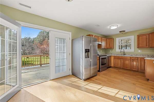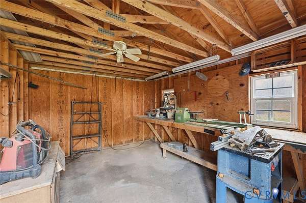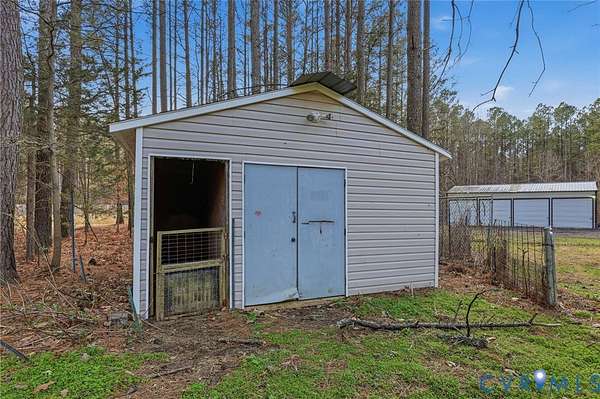Beautiful 3-bedroom, 2.5 bath home on 5 acres is almost all new and ready for you! New vinyl siding & vinyl windows, new roof, new heat pump, new deck, new flooring and fresh paint. Bathrooms have been updated with new vanities, faucets and light fixtures. All you have to do is move-in. Front door opens into the living room and an archway leads to the eat-in-kitchen with double doors to the back deck - perfect for watching those gorgeous sunsets. Kitchen has lots of cabinets and counter space, a separate pantry, and stainless-steel appliances. The formal dining room can easily be converted for home schooling, crafts, or office space. Laundry room (washer & dryer convey) and half bath complete the first floor. The primary bedroom is upstairs with an oversized closet and attached full bath. There are also 2 other bedrooms and a 2nd full bath. Outside is a large partially-fenced backyard perfect for a pool, playset, or garden plus an existing chicken coop and dog run. Lot is flat and partially cleared. There's a detached workshop with electricity and a HUGE 4-bay detached garage - ideal for the home mechanic or budding car collector. 10' doors and the ceiling peaks at 15'6". Garage sits on a concrete pad. There's a large fiberglass panel that provides natural light, but the garage has its own breaker panel, lights, and an RV/EV charging plug. Just 10 minutes from swimming and boating at Lake Anna State Park and 15 minutes to shopping and dining at Spotsylvania Courthouse.