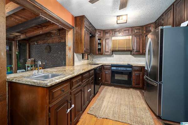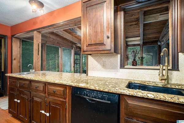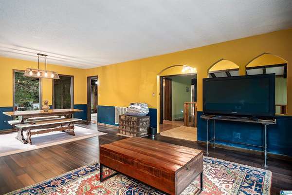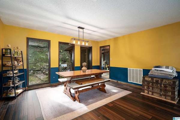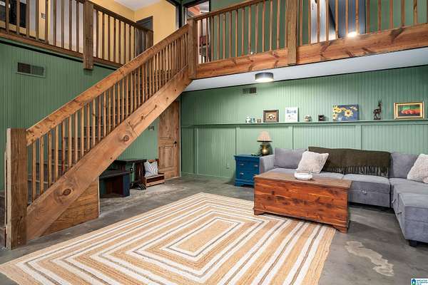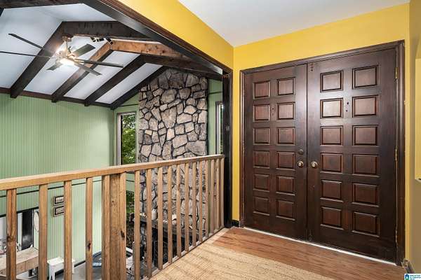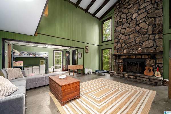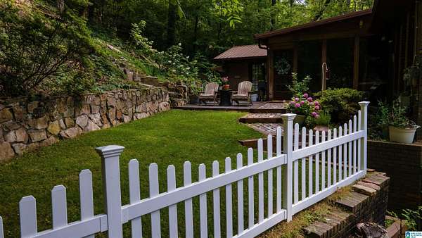 Situated in a private gated lake community, 6242 Ransom Rd offers 237 feet of lake frontage with a private dock and swim raft. Surrounded by mature trees, this property provides exceptional privacy while remaining just minutes from downtown Trussville's Entertainment District. Recent upgrades include a new metal roof (2023), fully renovated bathrooms, bamboo flooring throughout, and updated light fixtures. The great room features a stunning stone wood-burning fireplace, custom walls, ceiling, and doors. Additional highlights include a spacious two-car garage, new expanded parking pad, custom staircase and catwalk, landscaped backyard with new patio and stairs, and a new floating dock. The kitchen offers a new refrigerator, and the home features new attic insulation for improved efficiency. This residence perfectly blends privacy, craftsmanship, and modern comfort in one complete package.