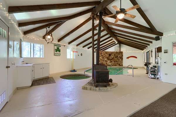 Tucked away in a peaceful Midpines setting and surrounded by over 88,000 acres of national forest, this rare 4.49 acre offering delivers privacy, space, and a truly unique lifestyle opportunity with convenient access to Yosemite National Park, where you can often hear the soothing sound of a nearby rushing river. The property features a spacious 3-bedroom, 3-bath home with an additional bonus room (potential ADU), offering approximately 2,930 square feet, plus an additional 1,391 square foot enclosed indoor pool and spa room with its own kitchenbringing the total functional living and recreation space to approximately 4,321 square feet. Inside, you'll find expansive living areas with warm wood-beamed ceilings, abundant natural light, and an open flow ideal for everyday living and entertaining, while the updated kitchen offers generous counter space, modern appliances, and a large island connecting seamlessly to the main living areas. The indoor pool and spa create a private, year-round retreat experience rarely found in the area, perfect for relaxation, wellness, or entertaining. Outside, enjoy paved access, usable land, mature trees, and a sense of seclusion, enhanced by an additional vacant parcel for added privacy and future potential, all within a reasonable drive to local amenities and surrounding foothill communities. Additional features include an attached garage, multiple heating options including a fireplace and wood stoves, and a spacious deck for outdoor living. A home, pest, well, and septic inspection have been completed to support a smooth and seamless transaction, and the property is being sold as-is, in its current and present condition. Ideal as a full-time residence, second home, or private retreat, this property offers a rare combination of indoor amenities, flexible living space, usable acreage, and a setting that is increasingly hard to find.