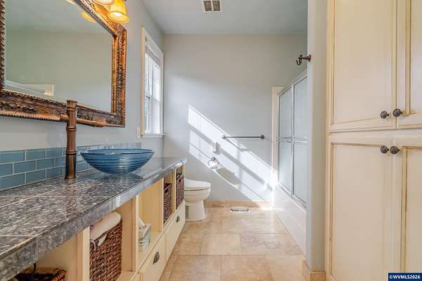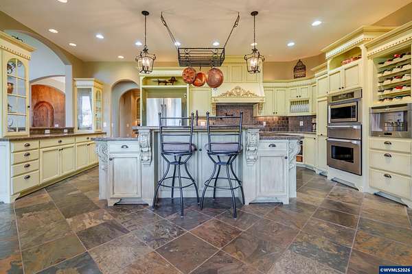 Est $7,302/moCustom 4BR, 6BA estate on 2.28 level, fenced acres tucked at the end of a quiet SE Salem dead-end road. Built 2006 with soaring vaulted ceilings, walls of windows, formal dining & refined piano/library room. Gourmet Thermador kitchen with granite island & butler’s pantry. Private primary suite with tray ceiling & soaking tub. Bonus retreat with bar + storage. Outdoor kitchen, 6-car garage that is 2,000+ SF RV bay w/ hook ups & dog wash. Dual furnaces & AC & dual HW heaters. Your next home is here.