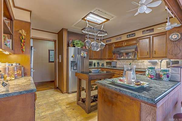 Welcome to Market 6245 Logan Ln in Fisher, AR. Tucked among mature hardwoods and surrounded by farmland is 8.74 +/- acres improved w/ a 1975 slab-built home offering 3,584 sf of well laid out living space. The acreage features a private drive, fencing, screened-in porch, 30x30 barn w/ 3 stalls, storage building, treehouse, and generator. The setting offers seclusion, recreation, and room for animals & equipment. The interior holds 4 bedrooms, 3 bathrooms, and a spacious living room w/ fireplace. Vaulted ceilings add height and natural light to the main living areas. The eat-in kitchen provides ample cabinetry, island workspace, and bar seating. The formal dining room holds a custom chandelier. The flex room could serve as a 5th bedroom or game room. The underground storm cellar offers shelter. Improvements per seller include a roof replaced in 2019 and HVAC units in 2021. The land and improvements make this property well suited as a primary residence or potential duck lodge. Furnishings are negotiable. Located appx 10 mins to Waldenburg, 20 mins to Newport, 25 mins to Jonesboro, and w/ convenient access to Hwy 49. Call today to schedule your tour and make an investment in tomorrow.