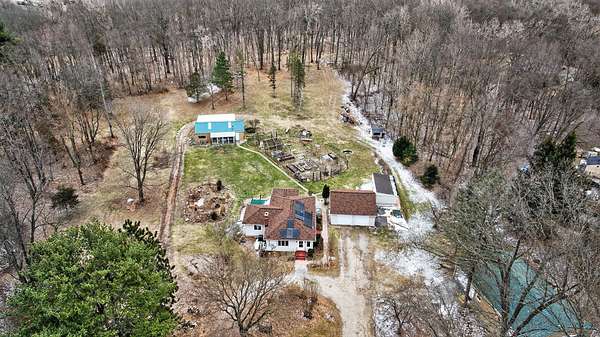 Set on approximately 15.13 acres, 3 Bedroom Updated Ranch Home w/walkout Basement includes solar, generator for home & outbuildings. this versatile hobby farm offers a unique blend of comfortable living, functional outbuildings, and a beautiful natural setting. Surrounded by mature trees and open spaces, the property provides a peaceful rural atmosphere while offering a variety of features suited for agricultural activities, workshops, gardening, and outdoor recreation. The land itself is a standout feature, offering a mix of wooded and open areas that support an abundance of wildlife. Deer and turkey are frequently seen throughout the property. The property includes several well-maintained outbuildings that expand its versatility. Pole Barn #1 has two overhead garage doors and is equipped w/200-amp service and 200-volt power & is heated w/fireplace. Pole Barn #2 has electricity, roof replaced in 2019 offers excellent storage for tractors, and can accommodate a variety of livestock. A large fenced garden area & greenhouse. A canning kitchen, creating a dedicated space for food preparation and preservation. Inc. a Shed and oversized garage. Additional information in assoc docs.