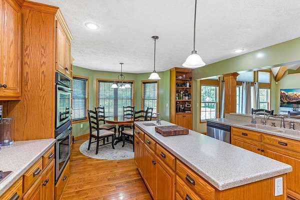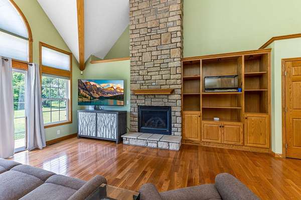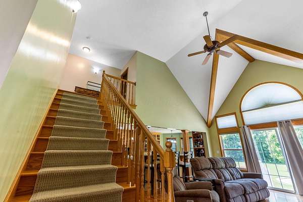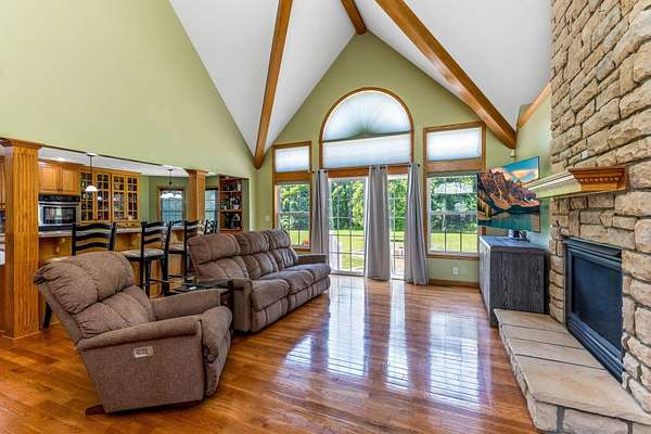 Quiet rural Ohio living at its best! Ideally located for those who love skiing at Snow Trails or spending weekends in Cleveland or Columbus, this property offers the perfect blend of country peace and city convenience. It's also ideal for multi-generational living, combining space, comfort, and privacy. This impressive home features five bedrooms, 2.5 bathrooms, and 2,759 square feet of well-designed living space. Enjoy light-filled gathering areas, a gourmet kitchen, and a private primary suite. The partially finished basement adds versatile space for recreation or storage. Step outside to over five acres of pristine land - perfect for gardening, recreation, or quiet mornings on the paver patio overlooking rolling fields and mature trees. The property offers a balanced mix of open pasture and wooded acreage, providing endless outdoor possibilities. Situated on State Route 61, you'll enjoy peaceful country living with easy access to Shelby's amenities. Built in 2003, this custom home showcases quality construction, a main-floor primary bedroom and laundry, and modern comforts throughout. Natural spring water feeds the pond and runs through a filtration system for pure, sustainable living. The property is bordered by cornfields to the north and south, with a densely wooded 10-acre backdrop that could accommodate cabins or campsites for family and friends. Don't just click a button - contact your favorite real estate agent to schedule a private showing through ShowingTime today. Don't miss this rare opportunity to own a beautiful piece of the Ohio countryside!