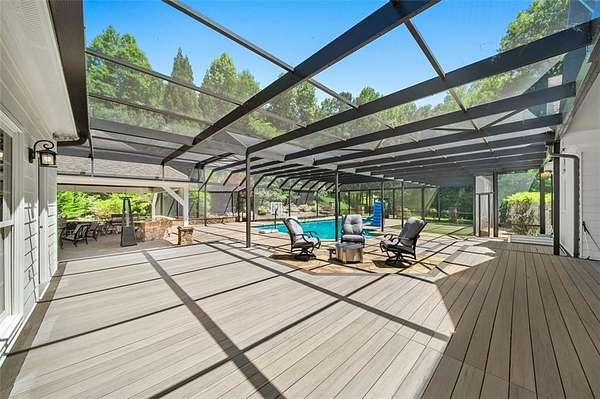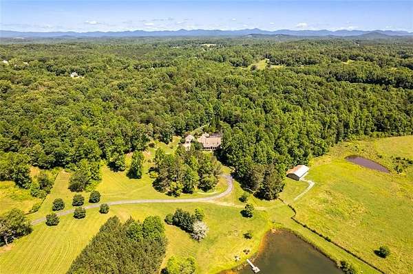 Discover your own private North Georgia retreat-an expansive 52+ acre gated and fully fenced estate. This remarkable property combines timeless craftsmanship with modern updates, creating a refined showcase of Southern charm and hospitality. The residence has been completely reimagined in recent years, rebuilt with today's preferred colors, a brand-new kitchen, and five luxurious bathrooms. Inside, you'll find elegant design, balanced proportions, and meticulous attention to detail. Outdoors, the estate offers endless amenities: a gated entry, stocked pond with trout and brim, fenced pastures for horses, wooded trails, chicken coop, rose gardens, fig trees, a pole barn, and a cow pond. Entertaining is effortless with a basketball half court, resort-style pool, putting green, waterfall, fenced dog park, and sweeping mountain views. Nature lovers will appreciate the abundance of birds, ducks, and deer throughout the grounds. Step onto the welcoming rocking chair front porch and into a vaulted foyer, framed by a formal dining room and a distinguished office. The home features seven bedrooms, including a primary suite with a fireplace, spa-like bath with soaking tub, walk-in shower, double vanities, heated floors, and custom his-and-hers closets. Four additional bedrooms sit on the main level two ensuite- two jack-n-jill. The gourmet kitchen is designed for both function and gathering, offering quartz countertops, commercial-grade appliances, custom cabinetry, and dual islands with double sinks. The light-filled great room opens to a full-length back deck, complete with screened seating, sun deck, and a covered outdoor kitchen. A fireside keeping room just off the kitchen adds warmth and convenience, with a half bath and direct pool access. The terrace level includes a media room, kitchenette/bar area with wine refrigerator, fitness room with steam shower, flex space with a dog wash, and additional storage. Above the garage, a bonus room awaits-ideal for a playroom, classroom, or private office. Private dock and TROPHY BASS LAKE, designed by Aquatic Environmental Services. The lake is its own ecosystem including investment into Electofish research, 5 feeders, bluegill, crawfish, trout, strain bass, grass carp, as well as a pebble bottom and appropriate aquatic plant life. Additional features include a whole-home generator, clean air and water purification systems, and a radon system-ensuring both comfort and peace of mind. Perfectly situated, the estate offers easy access to top schools, medical centers, and is just 11 miles to Dahlonega, 5 miles to Gainesville, and only 5 miles to Lake Lanier. This rare property represents the pinnacle of country estate living-a once-in-a-lifetime opportunity to own a true North Georgia masterpiece. The driveway provides easement to a neighboring 36+ acre estate that is also on the market with another company, for those interested in a combined 88+ acre compound. Call today for an appointment to have a private showing!