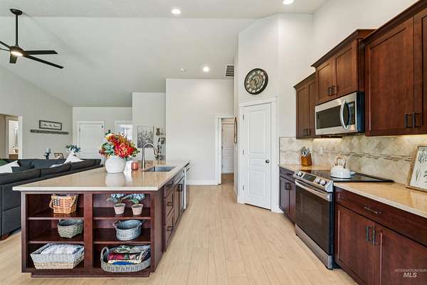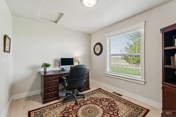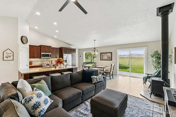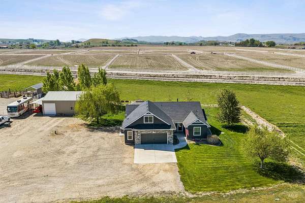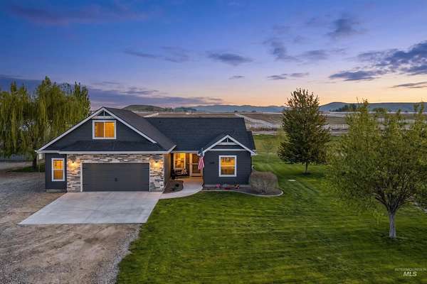 Sweeping Owyhee Mountain views, nearly 6 acres, a finished shop, and a fresh remodeled home... this one checks every box. Located just minutes from the Snake River and Idaho's famous wine country, this Marsing gem delivers that wide-open country feel without sacrificing style. Step inside and you'll immediately notice the difference... the freshly opened floor plan lets the space breathe, and the vaulted ceiling sets the tone the moment you walk in. The fresh remodel includes new flooring, fresh paint, updated finishes throughout, and a sleek, contemporary aesthetic that feels clean and intentional. The kitchen features quartz countertops and soft-close cabinetry, and the split-bedroom layout gives everyone their own corner of the house. A custom barn door leads into the dedicated office space when you need to get things done. Outside, the 1,200 sq ft shop is insulated with power... perfect for the hobbyist, contractor, or anyone who needs serious workspace. Add irrigation water rights and nearly 6 acres of usable ground, and you've got real flexibility to make this property work for your lifestyle. This is Idaho living at its best... space, views, and a home that's been done right.