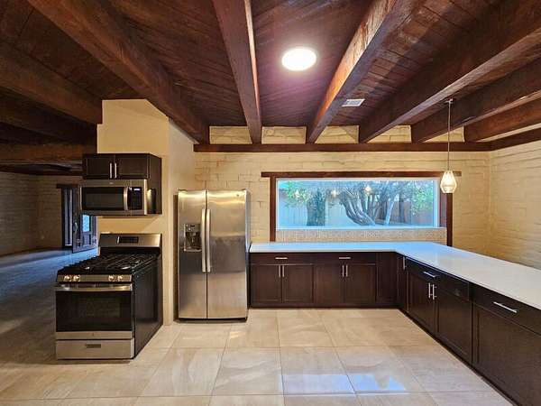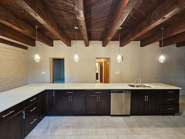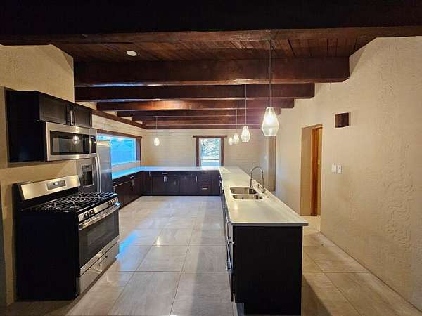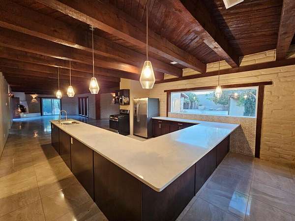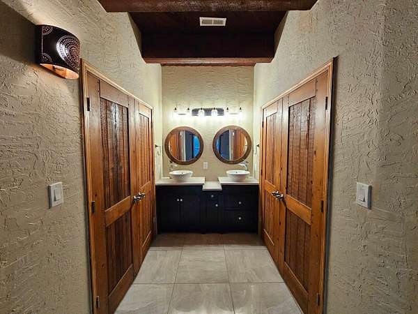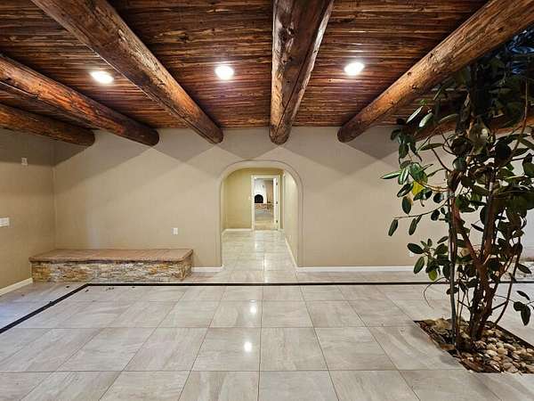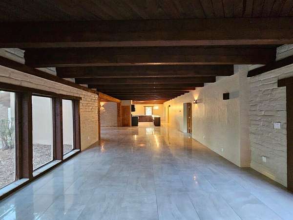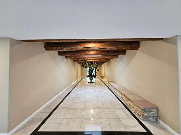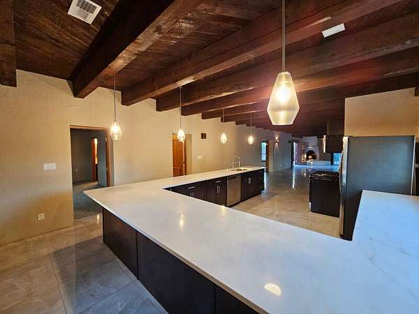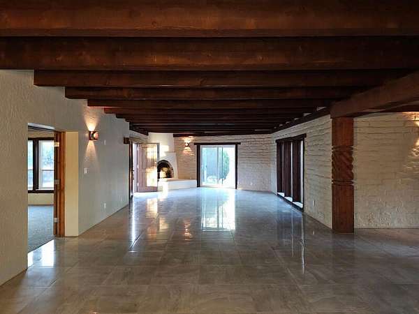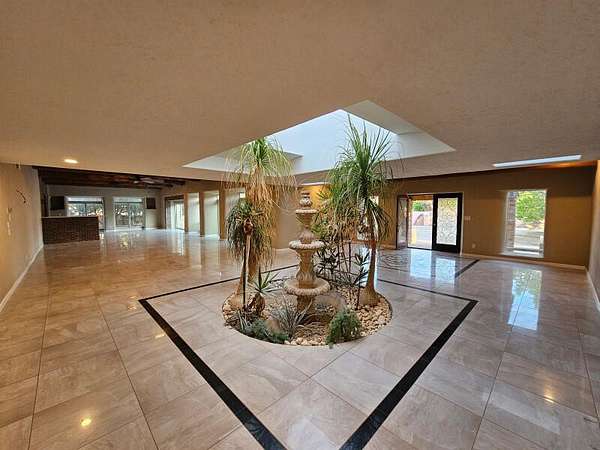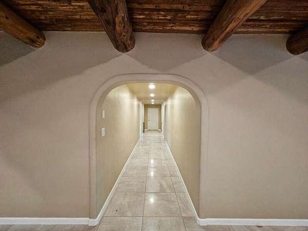Located behind secured gates on 2.51 acres, this contemporary property offers privacy and close proximity to the Corrales Bosque and the Rio Grande River. The entry atrium includes an indoor garden and a large skylight providing natural light to the space. The main living area features a built-in bar and a wood-beamed ceiling crafted with beautiful custom detail. The kitchen includes custom cabinetry and countertops, a commercial-grade range, oversized pantry island with seating area and additional modern finishes. The owner's suite includes a fireplace and a bathroom with dual sinks a freestanding tub integrated with the shower area, and an amazing walk-in closet. Detached casita with 2 bedrooms and 2 bathrooms and not to mention a pool - (pool needs work). This home is a must see!