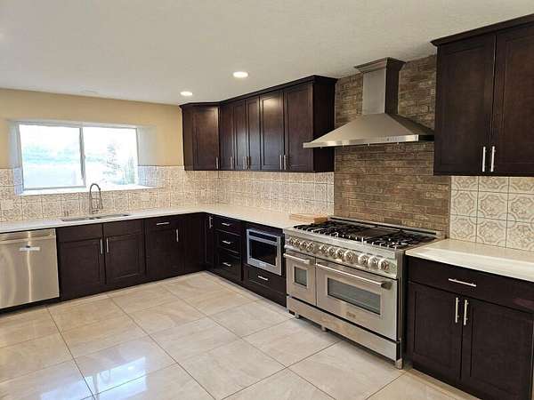 - Dishwasher, Free Standing Gas Range, Range Hood