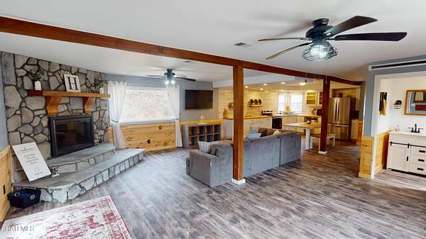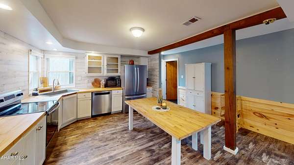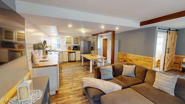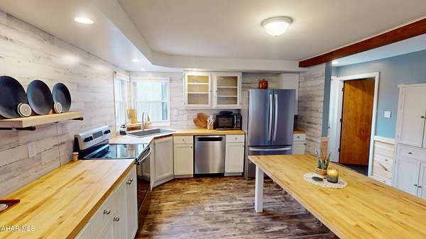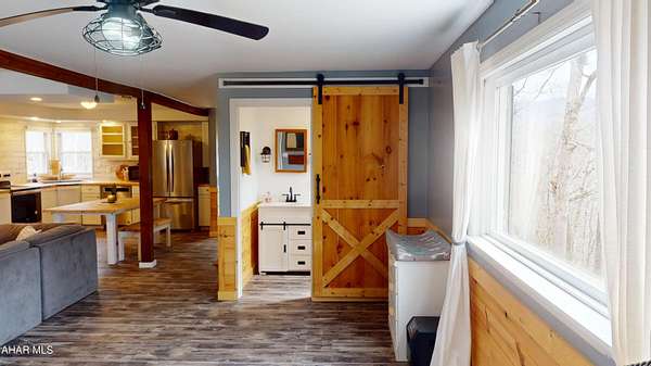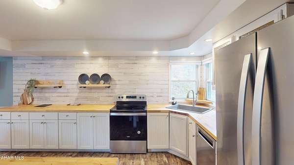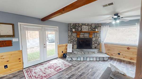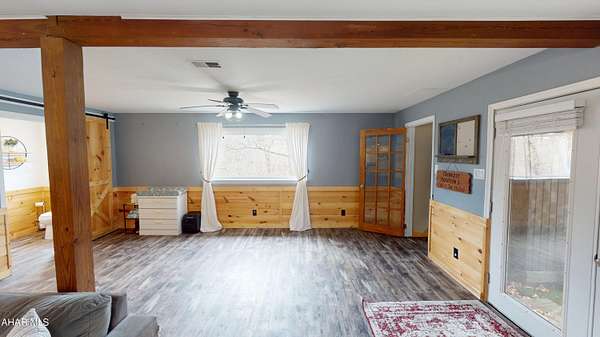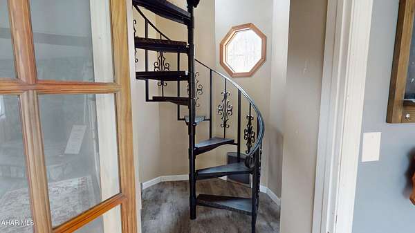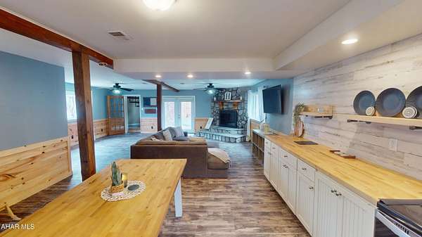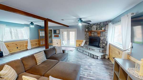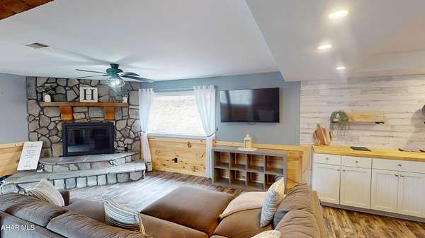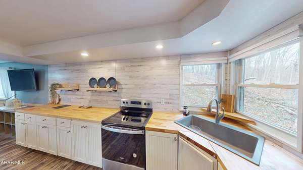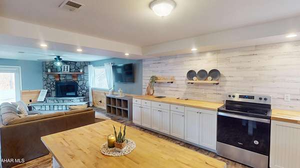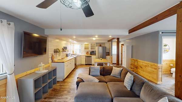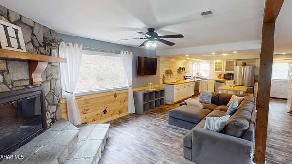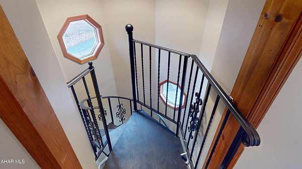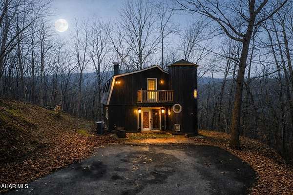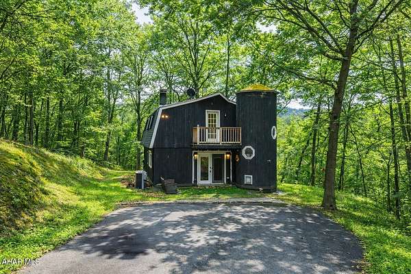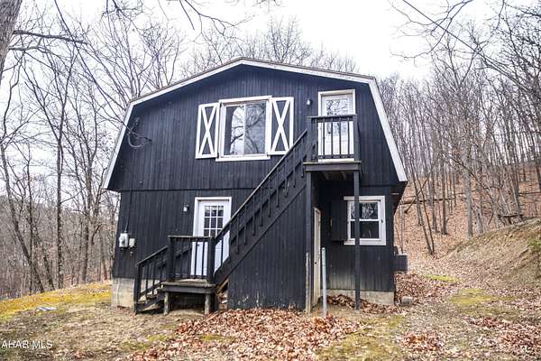Experience custom craftsmanship paired with country living in this unique approximately 2,154 sq. ft. home. Sitting on over 10 wooded acres, this property is great for those who love outdoors. It features a cleared food plot for the avid hunter and a second-floor balcony perfect for morning coffee, tea, or protein shake while watching wildlife or soaking in the view. A set of double-entry doors welcomes you into a completely open-concept first floor, where modern luxury meets rustic charm. You'll find durable, waterproof luxury vinyl flooring throughout, beautifully complemented by warm pine wood accents. The heart of the home is a newer kitchen--a chef's dream featuring butcher block countertops and a deep farmhouse-style sink. Bathed in natural light from two massive bay windows, the living area centers around a magnificent stone-front wood-burning fireplace, while a spiral staircase serves as a striking architectural characteristic. Designed for modern comfort, this 3-bedroom, 2.5-bathroom home includes a private master bedroom, and updated ensuite owners bathroom that has a stand up shower. You'll enjoy total peace of mind with a new furnace and a new water heater already in place. The location is unbeatable for both convenience and leisure: situated approximately 5 minutes from the historic Jean Bonnet Tavern, 10 minutes from I-99, and only 15 minutes from the world-class Omni Bedford Springs Resort and the PA Turnpike.