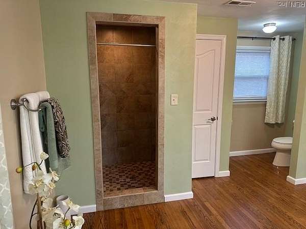 Enjoy 3.02 wooded Acres without giving up the convenance of City Living. This All-Brick Ranch has been thoughtfully improved inside and outside throughout and is move in ready for its next owner. An open floorplan with original hardwood and ceramic tile floors throughout. Kitchen offers 42-inch solid wood cabinets, loads of countertop space and stainless appliances. Primary ensuite with walk in closet, oversize jetted soaking tub, spacious tiled shower with a built-in sitting ledge along with double closets. The renovated hall bath offers adult height oversize double vanity with plenty of storage. A separate laundry area that offers front loads and accommodates the half bath. Gas tankless water heater, 35yr roof shingles, Newer HVAV, Windows, Exterior Wrap, 20x15 Storage Shed. Trails that lead throughout the acres along with blackberries, blueberries, raspberries and mulberries.