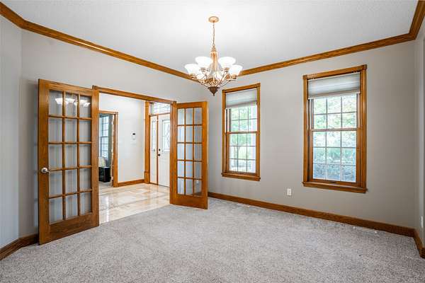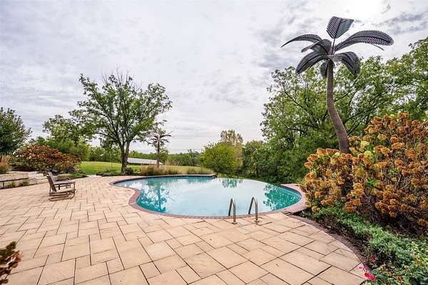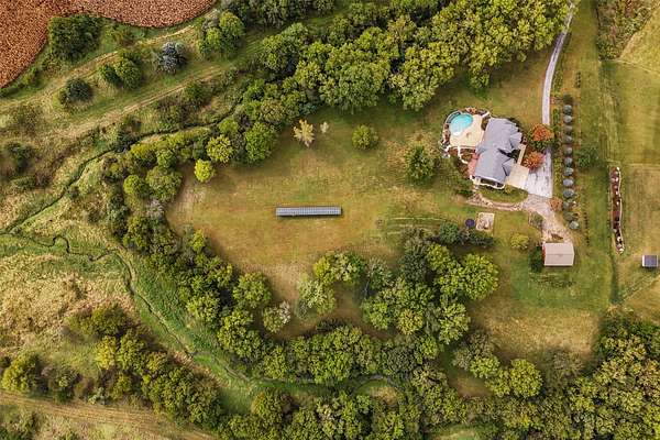 Best of Both Worlds! Enjoy peaceful country living just minutes from city amenities in this stunning 1.5 story with nearly 3,000 finished sq ft, nestled on 7 acres in Pleasant Hill. Step into a grand two-story foyer w/French doors on each side, offering flexible spaces-a formal dining room & home office, playroom, or even an extra bedroom. Spacious great room features a wall of windows with breathtaking views of the countryside & overlooks the showstopping infinity saltwater pool, complete with a metal palm tree & large patio-your own private oasis. Updated eat-in kitchen includes all appliances, quartz countertops, a center island, built-in desk, pantry, & ample cabinetry. Just off the kitchen, you'll find a built-in buffet before the laundry room with included washer/dryer, folding counter, & utility sink-conveniently located near the oversized 4-car attached garage. First floor primary suite with large windows, overlooks the pool & countryside views. The luxurious spa like bath is updated. Upstairs, 2 large bedrooms, each with private bath. Finished walkout lower level features a massive family room, 5th bedroom, full bath, & easy access to the pool & patio. Need more space? The 30'x38' outbuilding offers room for up to 4 vehicles, animals, or your dream workshop. The private, tree-lined driveway is gated & beautifully landscaped. Welcome home to Pleasant Hill!