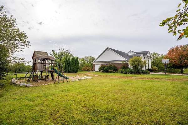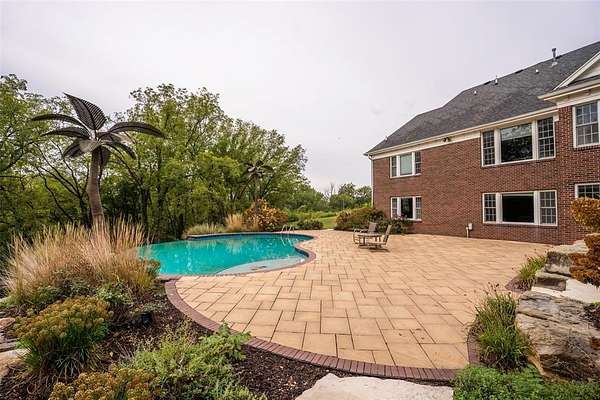 Best of Both Worlds! Enjoy peaceful country living just minutes from city amenities in this stunning 1.5 story with nearly 3,000 finished sq ft, nestled on 7 acres in Pleasant Hill. Step into a grand two-story foyer w/French doors on each side, offering flexible spaces-a formal dining room & home office, playroom, or even an extra bedroom. Spacious great room features a wall of windows with breathtaking views of the countryside & overlooks the showstopping infinity saltwater pool, complete with a metal palm tree & large patio-your own private oasis. Updated eat-in kitchen includes all appliances, quartz countertops, a center island, built-in desk, pantry, & ample cabinetry. Just off the kitchen, you'll find a built-in buffet before the laundry room with included washer/dryer, folding counter, & utility sink-conveniently located near the oversized 4-car attached garage. First floor primary suite with large windows, overlooks the pool & countryside views. The luxurious spa like bath is updated. Upstairs, 2 large bedrooms, each with private bath. Finished walkout lower level features a massive family room, 5th bedroom, full bath, & easy access to the pool & patio. Need more space? The 30'x38' outbuilding offers room for up to 4 vehicles, animals, or your dream workshop. The private, tree-lined driveway is gated & beautifully landscaped. Welcome home to Pleasant Hill!
