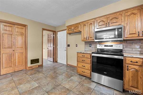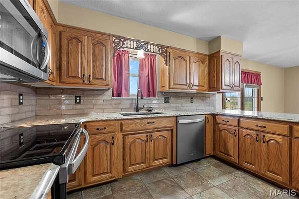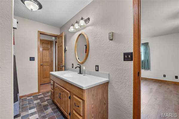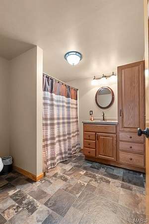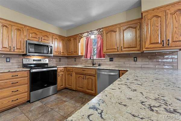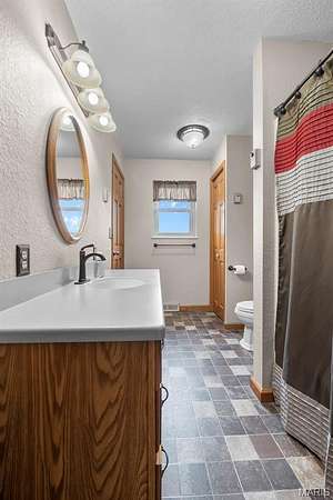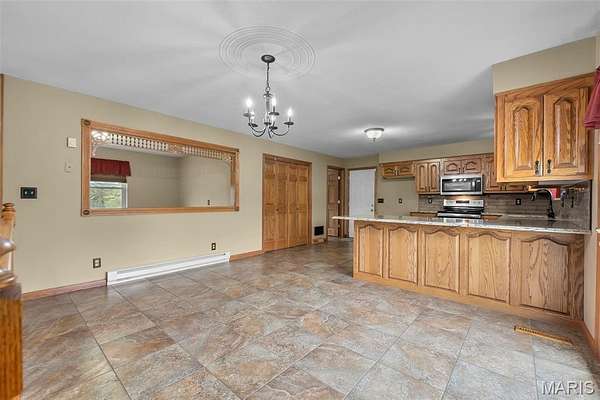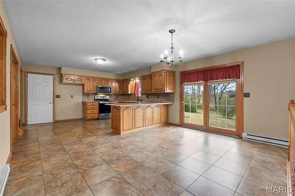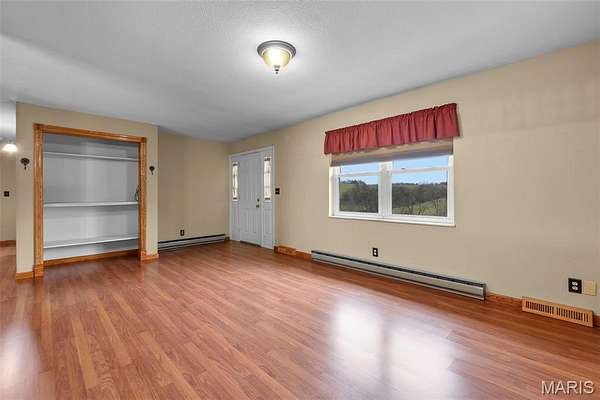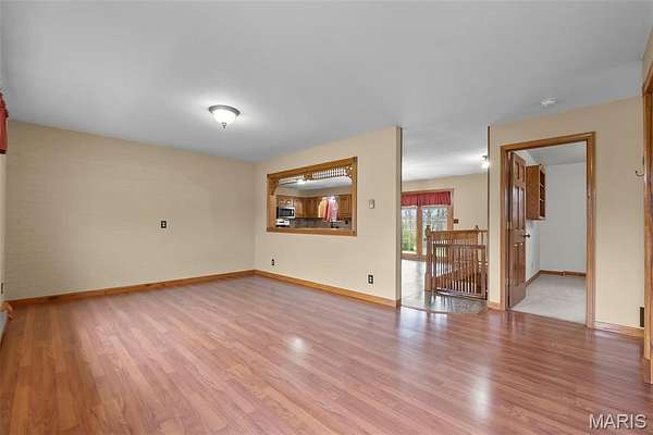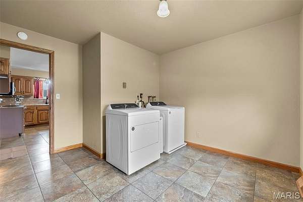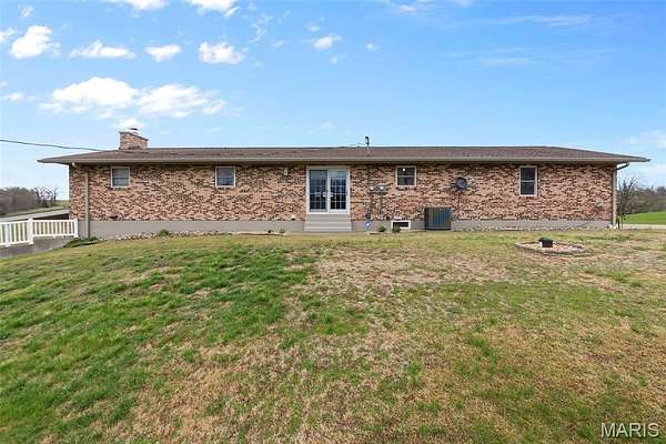 This one checks a lot of boxes. Three-bedroom ranch on nearly 3 acres in Perryville, Missouri — with a walk-out basement that's fully set up as a second living space complete with its own updated kitchen, granite countertops, gas fireplace, full bathroom, and a large open family room.