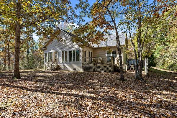 Beautiful 3-bedroom, 3-bath home on two wooded lots with private natural views and personal boat dock. This property features a long private driveway with circular turnaround, an oversized 2-car garage, and a separate finished bonus room above the garage-ideal for guests, office, or studio use. The main level offers a warm living room with fireplace, large windows overlooking the creek and natural scenery, and a bright 3-season room with expansive natural views. Durable vinyl siding and low-maintenance exterior. Small side deck is plumbed with propane for easy outdoor grilling. The primary suite includes an oversized tiled shower with an efficient instant propane water heater and temperature control. Additional highlights include a raised walking path to the dock, mature trees, and tranquil privacy. Located in a highly walkable and bike-friendly neighborhood, residents also enjoy access to a community clubhouse with tennis/pickleball courts and a seasonal saltwater pool. A rare opportunity to own a private nature retreat with community amenities.