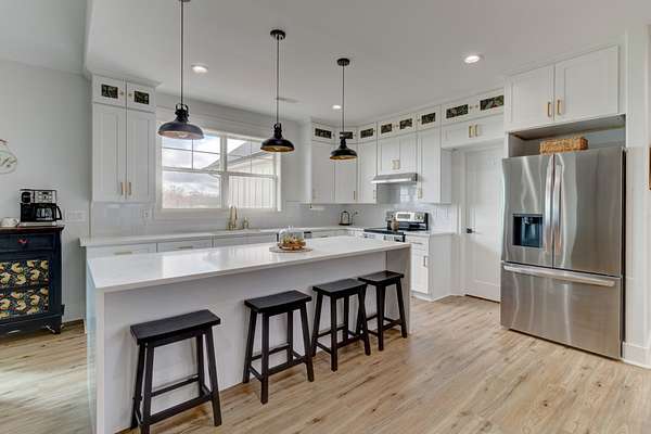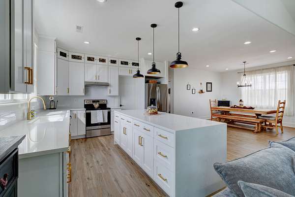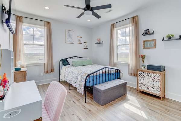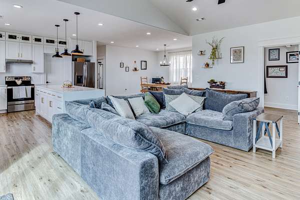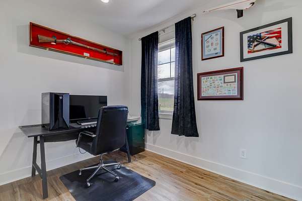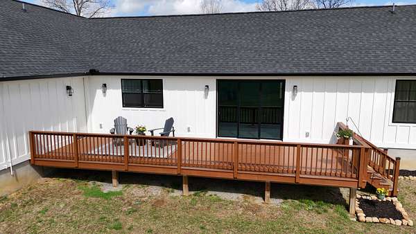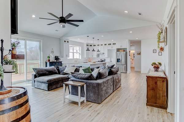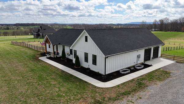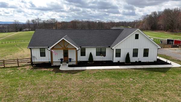 Stunning custom-built, one-level home on 8.51 peaceful acres, cross-fenced into three separate pastures and located just 5 miles from shopping and restaurants and 8 miles from the hospital. This beautiful property offers privacy, scenic views, and several outbuildings, perfect for animals or hobby farming. Inside, you’ll find high-end features throughout, including high ceilings, beautiful LVP flooring, tile, and upgraded fixtures. The kitchen features quartz countertops, stainless steel appliances, and an oversized pantry with built-ins. The living area offers a cozy electric fireplace, while the spacious primary suite includes a large closet and a 5×5 custom walk-in tile shower. Additional highlights include an office/flex room, a laundry room with a sink, a built-in mudroom area, a large deck overlooking the property, Trane HVAC, insulated garage doors, and a security system. The property extends into the woods behind the home, offering added privacy and natural beauty. *Property tour video available at the bottom of this listing under Documents and Links.