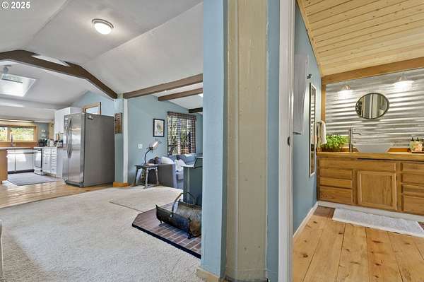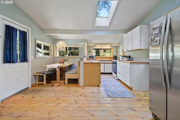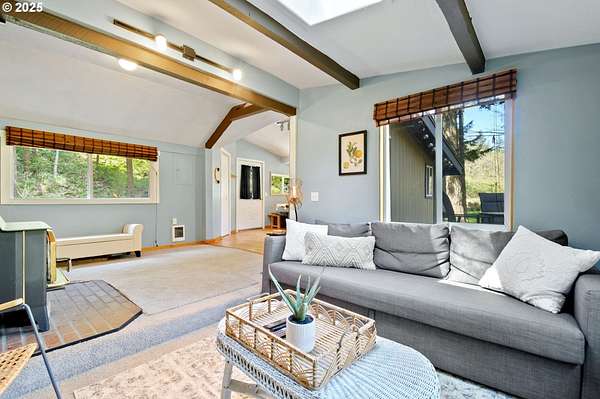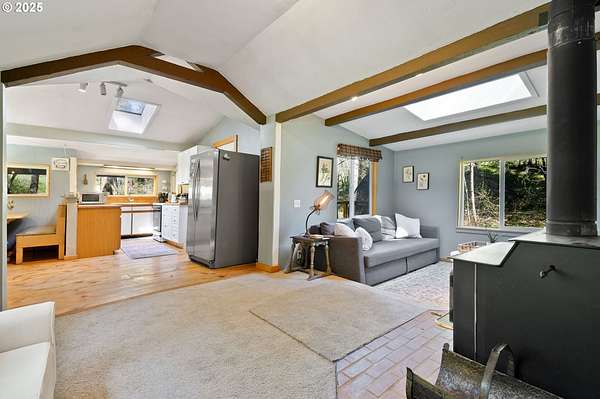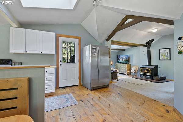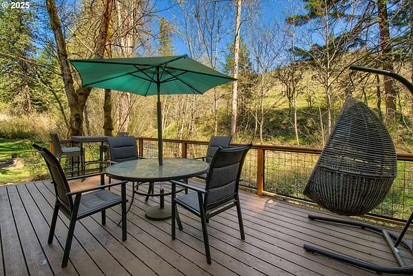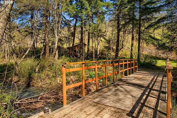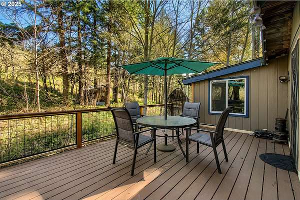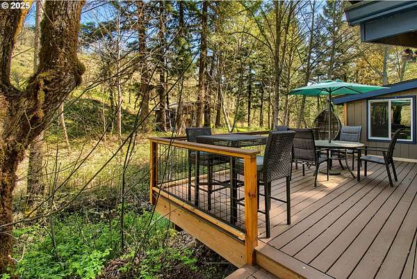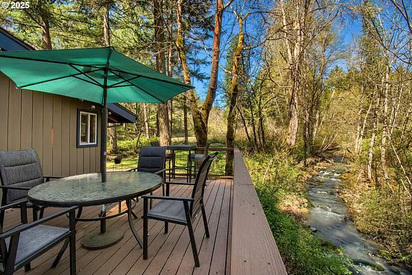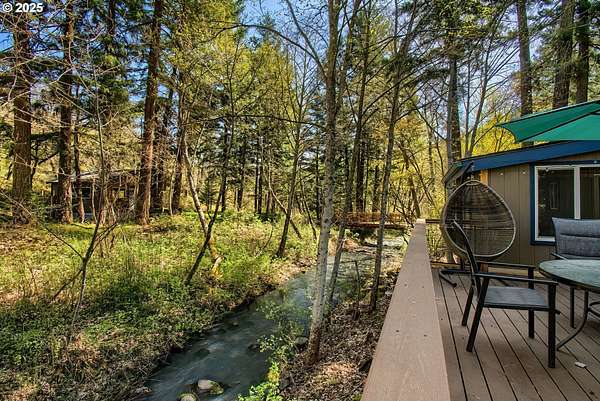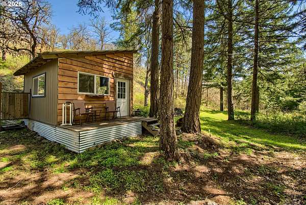 Welcome to your dream escape at 625 Wilson Rd in Mosier, where alpine tranquility meets rustic sophistication. Nestled on two tax lots with a sprawling 14-acre expanse, this charming detached cabin offers a rare combination of privacy and connection with nature, all while being moments from modern conveniences. Built with historic timbers from the Broughton Mill Flume, the interior of the cabin is inviting and cozy, featuring a delightful wood stove that warms the sunken living room, creating a perfect gathering place. The open layout flows seamlessly into the dining area, leading to a spacious bedroom equipped with a walk-in closet and a charming loft space, providing abundant storage or additional sleeping quarters. Complementing the cabin's rustic appeal are modern amenities, including updated plumbing in the crawlspace and a laundry room with newer washer/dryer. Stepping outside, immerse yourself in nature on the expansive deck, added in 2022-ideal for stargazing, al fresco dining, or peaceful meditation. A newly installed roof in 2023 ensures the cabin is ready for all seasons. An additional dwelling unit is across the property. The property serves as an outdoor enthusiast's haven. Toast marshmallows around the fire pit, enjoy meals at the front deck's picnic table, or explore the potential new home building site across the creek, with its picturesque backdrop. This scenic location is more than just breathtaking views; it's part of a vibrant community. Just 2 miles away, downtown Mosier offers a General Store, Mosier Company restaurant, coffee shop and other amenities all with easy access to the Highway for smooth commutes. Call today to schedule a viewing, and step into the natural beauty already capturing so many hearts! Seller is a licensed Oregon and Washington Realtor. Back on market, no fault to sellers! Ask for all reports!