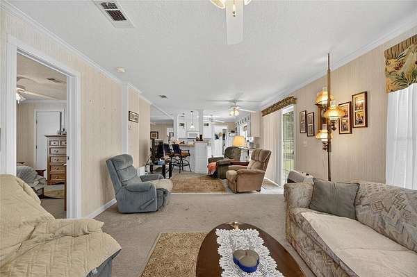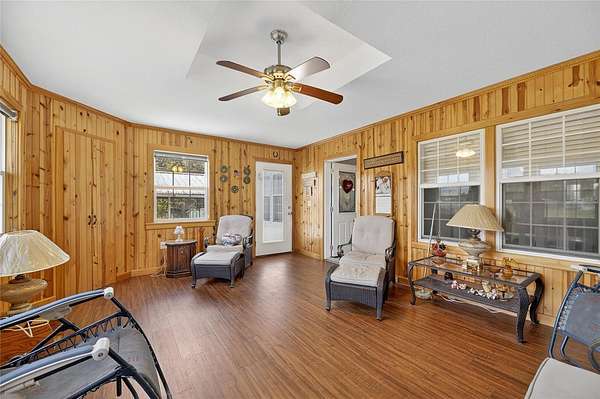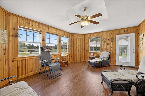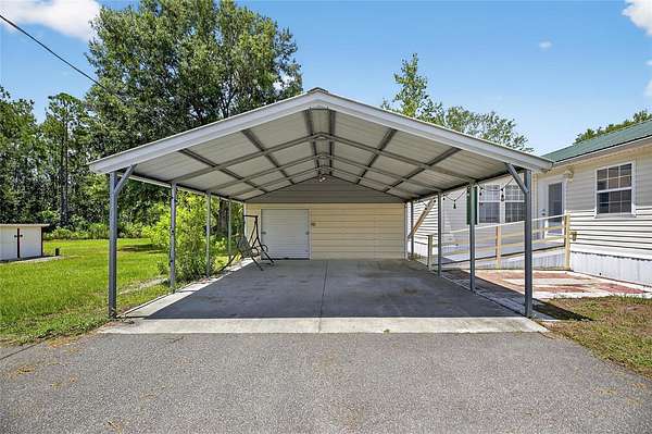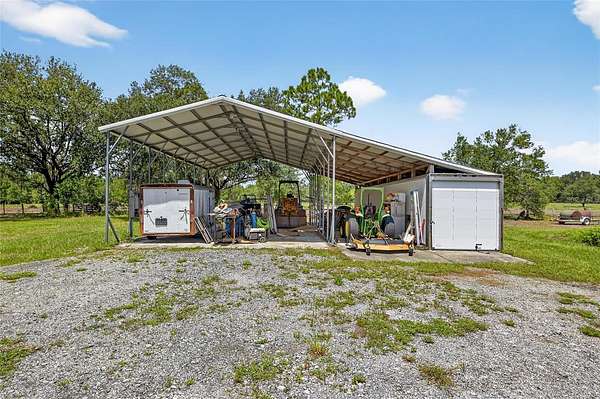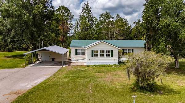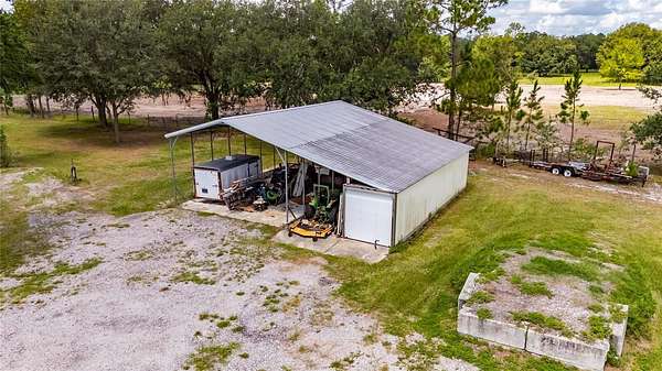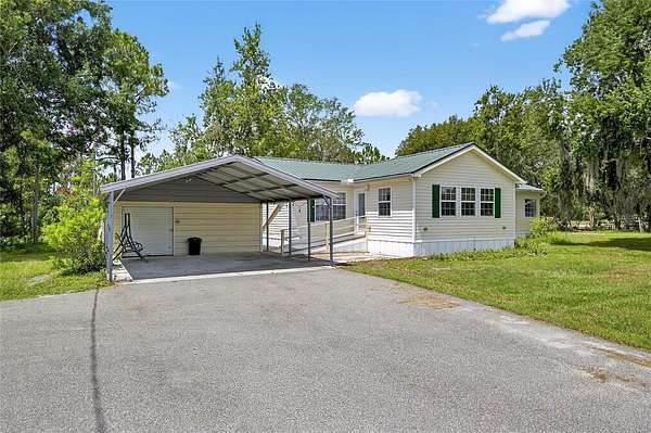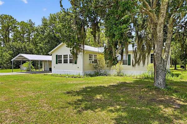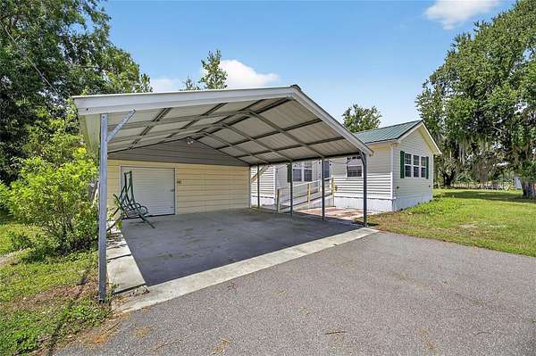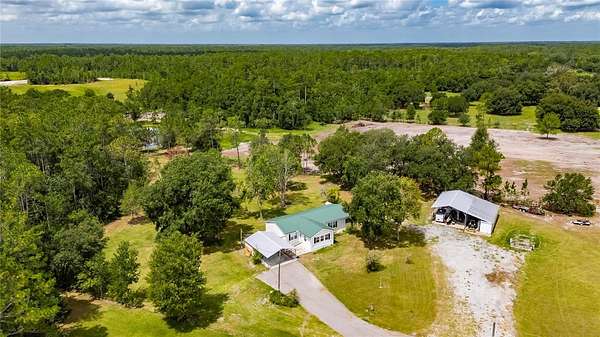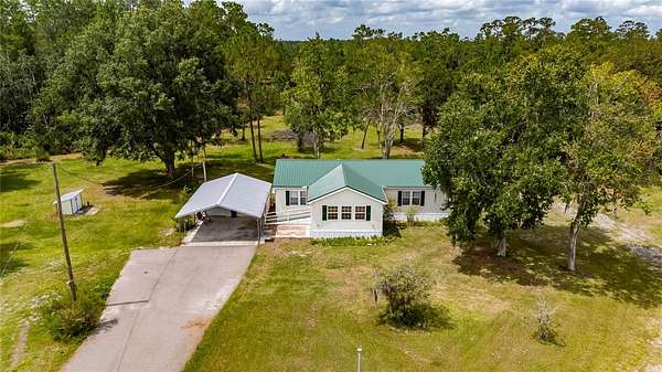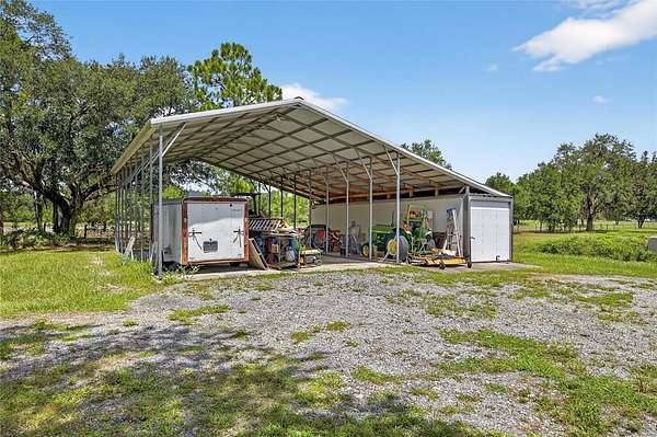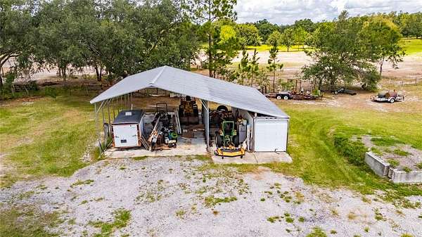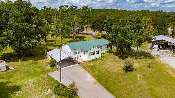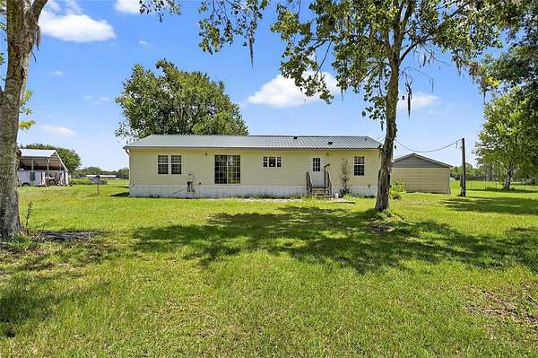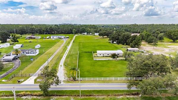 Come take a look at home you can keep all your toys and work equipment. 6.5 acres of fenced land is zoned for Residential & Agriculture. Think of all the things you can do here: store your RV, trailer, farm equipment, raise animals from chickens to horses or build your dream home. The 3 bedroom, 2 bathroom mobile has been converted into a 2/2 for more living room space but can easily be converted back with just one wall. The home has a brand new metal roof, new skirting and the foundation and straps inspected and some replaced. County records have 1456 sq ft but doesn't include the beautiful x 19ft X 14ft (266 Sqft) pine panelled front room that has an AC unit but is not heated (do you need more heat in Florida?) That's 1,722 Sqft under the roof. The property is fully fenced. Includes an enclosed well house, large carport with a storage shed & a long driveway that gives easy access to any vehicle & allows lots of room for parking. Last but not least a mechanic's dream - a 42 x 20 covered workspace which features a concrete slab floor, 8x40 trailer and a loading ramp for loading heavy equipment. The workspace can hold any type of vehicle including, work trucks, heavy equipment, boats & RVs. Enjoy small town living with access to everything with Disney being minutes away!