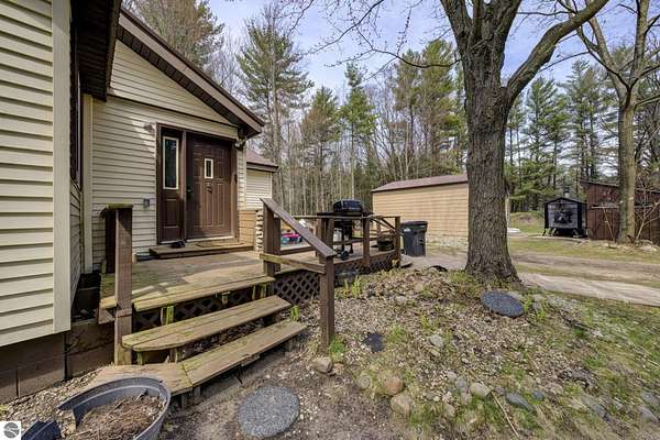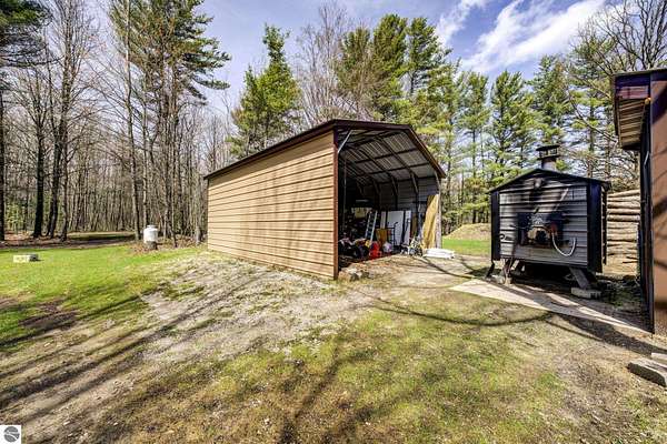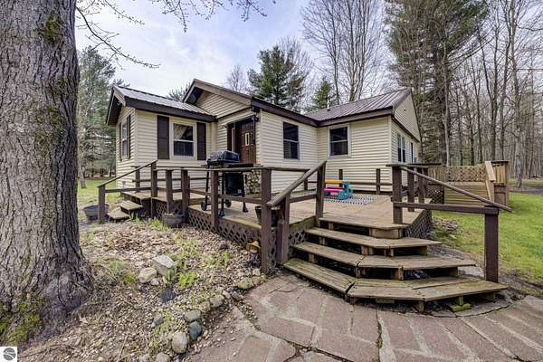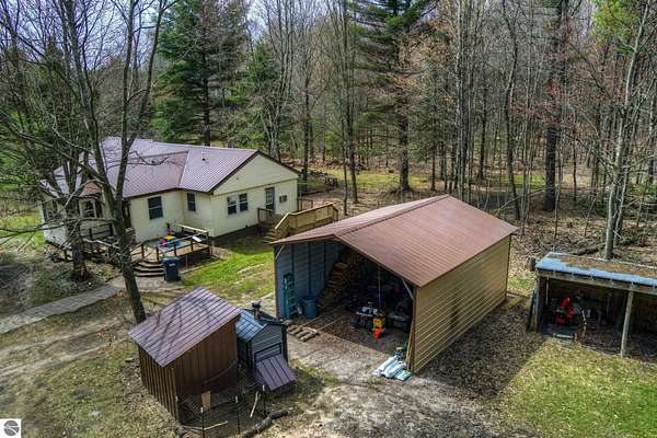 Do you ever dream about living off a dirt road? One that winds and turns and helps you slow down before hitting your driveway. This property offers you just that with a ranch style home consisting of 2 bedrooms and 1.5 baths. The layout is an L shape. The kitchen and dining area are towards the front of the home, and the very large living room is in the back of the home. There are 2 mudrooms, 1 of which could be re-worked to add a different living space such as an office or an additional bedroom. There are 3 separate decks that serve as a nice outdoor space too. The property is served by propane however the outdoor wood boiler system is an additional source of heat. Plenty of space to roam outside on the 10 acres. You'll find the garden area, hoophouse, the garden shed, a chicken coop, the firepit, the play structure, a 20x24 outbuilding, along with 7 apple trees and morel mushrooms when in season.