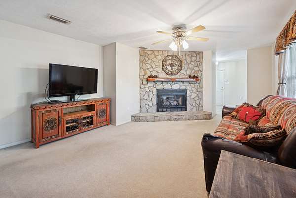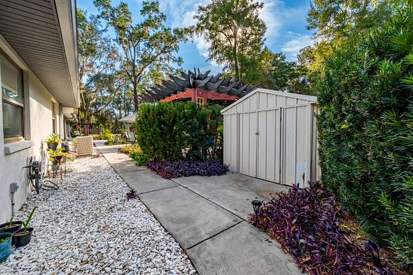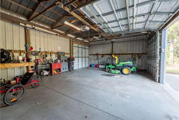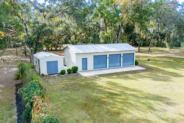 Beautiful custom 3BR/2BA concrete block stucco ranch home set on 10.3 acres, offering privacy, space, and comfortable living. Inside, a striking rock fireplace anchors the main living area, creating a warm and inviting atmosphere. The Florida room is designed for entertaining with a large wet bar and a spacious layout ideal for gatherings. The kitchen features a large walk-in pantry, providing ample storage and convenience for family and entertaining needs. Outside, the home features a 2-car attached garage, a 2-car carport, and a 3-car detached garage with workshop, along with a large parking apron and paved driveway providing ample space for vehicles, RVs, and guests. The expansive rear patio includes a gas grill supplied by a buried propane line that runs directly to the grill area with no portable propane tanks needed and a custom-built pagoda-style pergola, creating an ideal outdoor entertaining space. The property also includes a whole-house generator fueled by the same buried propane tank, automatically powering the home including HVAC and appliances during outages and seamlessly restoring service once power returns. There is a dedicated RV hookup for added convenience. In the backyard, a separate plumbing and septic system independent from the main house is ideal for an RV or future use. Approximately five acres surrounding the home are beautifully landscaped, creating a park-like setting with perennial gardens, secret garden walkways, and a remarkable variety of established trees and plantings, including live oak, magnolia, satsuma orange trees, cabbage palms, sago palms, catalpa, pawpaws, bamboo, ligustrum, slim bottle brush, Simpson stopper, Ocala anise bushes, flatwoods plum, bougainvillea, and chaste trees. The remaining acreage is left relatively untouched and wooded, providing natural privacy, abundant wildlife habitat, and room for future use or enjoyment. Longleaf pine and hickory seedlings are planted throughout the open acreage, and a fenced backyard, garden oasis, and abundant wildlife including deer and turkeys complete this exceptional property. Conveniently located just five minutes from town and close to schools, shopping, a golf course, Suwannee River State Park with natural springs, the Gulf of Mexico, Cedar Key, and with easy access to Gainesville. Don't miss the opportunity to see this one-of-a-kind property! Schedule your private showing today!