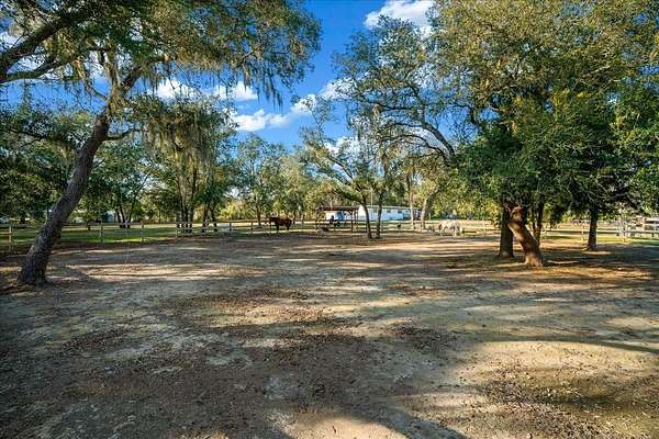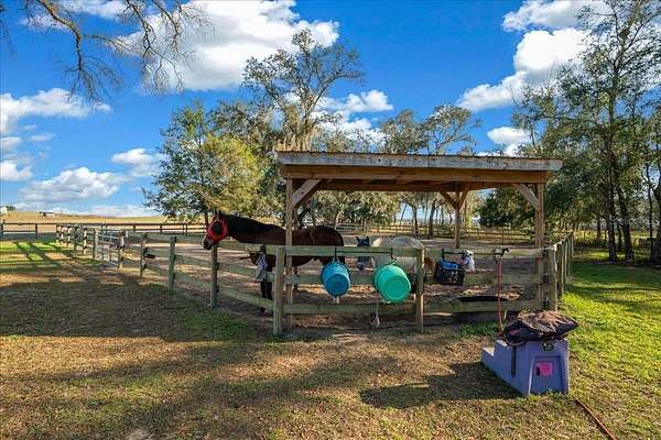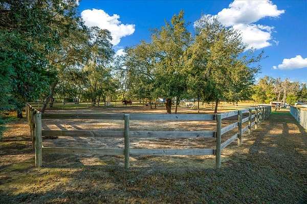 Enjoy peaceful country living just outside the city with this versatile mini farm set on 2.5 fenced, high & dry acres. With No HOA or deed restrictions, this offering allows true freedom of use and ownership. The land includes a solid 2 bedroom, 2 bath mobile home with approximately 840 Sq.Ft. of living space, making it well suited as a primary residence, weekend retreat, or income producing rental. For equestrian use, the acreage is thoughtfully arranged with a large paddock, run in shed, and a flat grassy riding area, offering practical space for horses. In addition, the land includes a chicken coop, fire pit, and a small pond, creating a peaceful outdoor setting for relaxation and enjoyment. The shed on the property equipped with water provides convenient storage for equipment, tack, or tools. Located just 5.7 miles from Goethe State Forest, owners enjoy easy access to miles of scenic horse and ATV trails. The location is approximately 18 miles from the World Equestrian Center and 15 miles from the HITS Horse Show Grounds, offering excellent proximity to major equestrian venues. Beyond its equestrian appeal, the area provides outstanding recreational opportunities, with Rainbow Springs and Devil's Den just 15 miles away for swimming, kayaking, and outdoor adventure. The Gulf Coast is approximately 23 miles away, while the Atlantic Coast is within 105 miles, making day trips to the beach easily accessible. As an added bonus, this mini farm is currently income producing, with one side of the home operating as an Airbnb, a revenue producing farm stand, and an established Harvest Hosts location for RV renters, offering multiple income streams in a highly desirable Central Florida location. Schedule your private showing today!