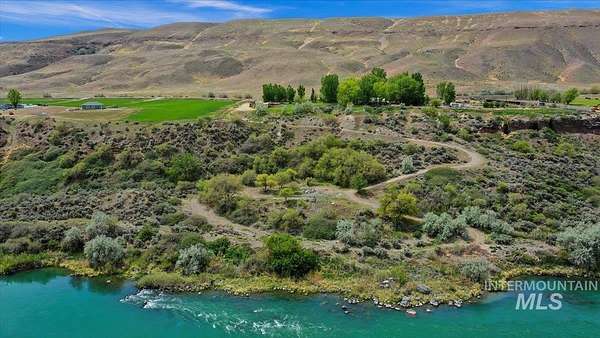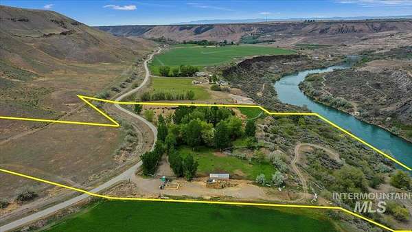 This one-of-a-kind property spans over 20 acres and is nestled along the Snake River. The well-kept grounds with an abundance of shading Willow trees surroundthe home. An irrigated pond flows continuously, creating streams through the property. The artistic structure of the home creates a certain ambiance that can beseen around every corner. A road has been routed to the lower part of the acreage that would make a magnificent building site! Build your dream home facing alarge waterfall across the Snake River! The property currently generates income as an established Equine and Animal Therapy Sanctuary. Call for more details.The 1662 square foot home also has income potential as an Airbnb. Located just 15 minutes from Interstate 84, travel to Boise in 1 1/2 hours or the the ski slope of Sun Valley in less than 2 hours. Plenty of space to store your recreation toys as well as 3 storage sheds. Kayaking, rafting , hunting, fishing, hot springs and the beautiful Hagerman Valley are just minutes away.
