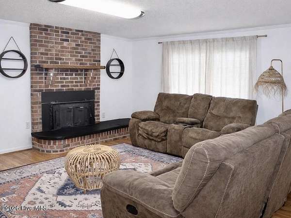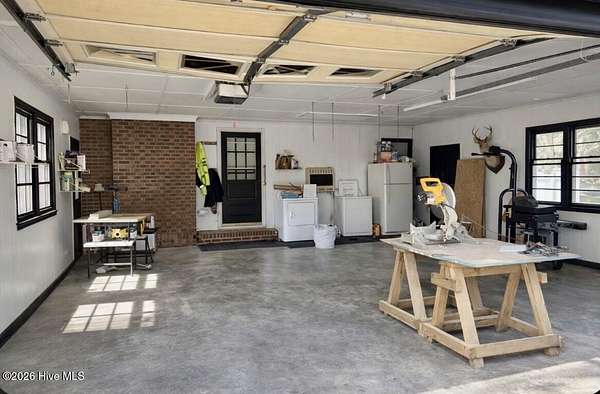 If you're looking for country living and space inside and out this home is perfect for you! Charming brick home in a tranquil country setting. This three-bedroom ranch-style home with new flooring in living room/dining room and kitchen boasts a spacious front porch, perfect for enjoying peaceful days of relaxing in your rocking chair enjoying the outdoors. Inside, the home features a large open-concept layout with the kitchen, dining area and living room seamlessly combined, creating a comfortable and inviting space for everyday living and entertaining. A paved driveway leads to a two-car garage and additional carport parking area, providing plenty of space for vehicles, outdoor equipment, or an ATV. The property also includes separate outbuildings for extra storage or workspace. You'll have peace of mind during bad weather with a Generac generator that is always ready at a moment's notice in case of power outages. Country living that is a short distance to Leland (21 miles) and Wilmington (27 miles), a great property that is perfect for anyone looking for space.