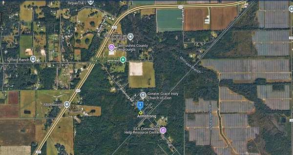 Head east on Clymer Rd toward Maple Tree Ln., turn right onto FL-207 S, then turn left onto Armstrong Rd., continue for approximately 0.6 miles, and the vacant lot will be on the right side.
