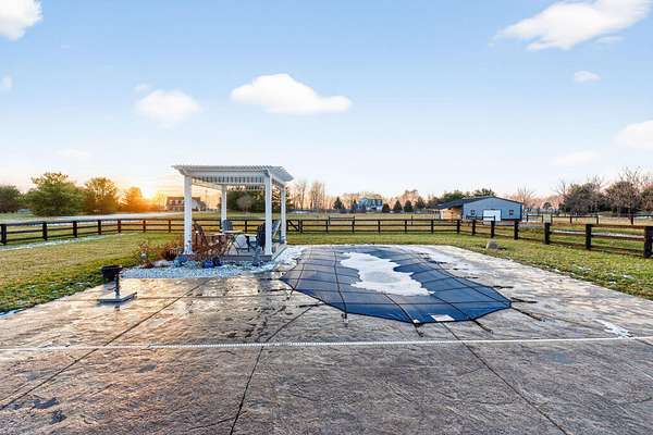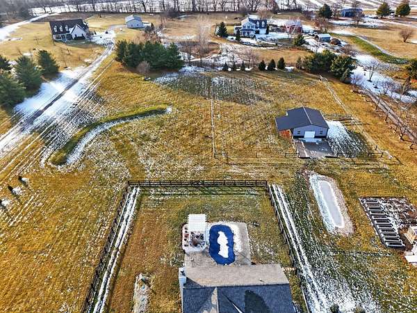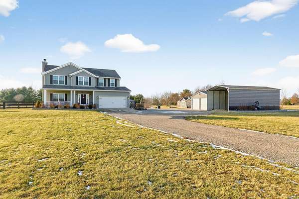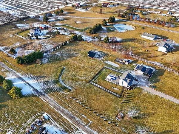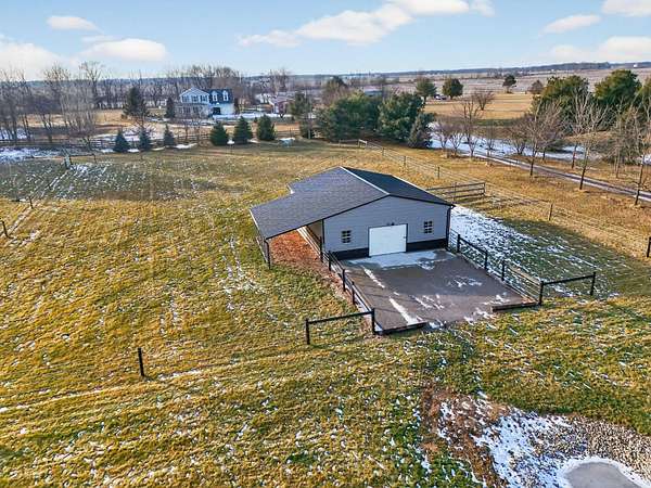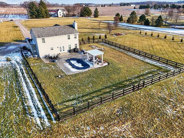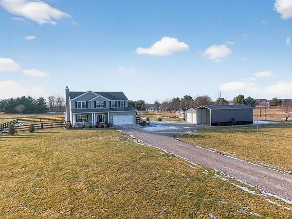 Discover this stunning, well-maintained home nestled on just over 5 acres. As you arrive, you'll pass an oversized two-car pole barn before pulling into the attached two-car garage, setting the tone for the space and versatility this property offers. Step inside to spacious, light-filled living areas designed for both everyday comfort and effortless entertaining. The main level features a private home office, a generous living space, and a beautifully remodeled kitchen that flows seamlessly to the backyard. Step outside to a recently installed patio and in-ground pool, creating the perfect setting for summer gatherings and relaxation. Upstairs, the primary suite offers ample closet space, while two additional bedrooms and a flexible loft provide plenty of room for family, guests, or hobbies. The partially finished basement adds even more living space, complete with an additional family room and a bonus area wired for a home theater. Outdoor living truly shines here. Take a dip in the pool while enjoying views of the newly installed horse pasture, complete with a barn featuring 3 high-quality stables. Whether your passion is horses, hobbies, or simply enjoying wide-open space, this property is ready to accommodate it all. Blending country charm with modern convenience, this home offers serenity, functionality, and endless possibilities. Whether you're raising a family, working from home, tending to horses, or simply craving space and quiet, this property delivers.