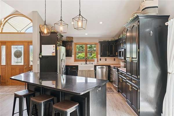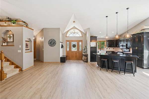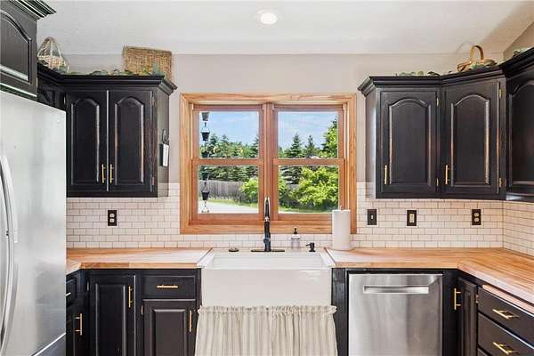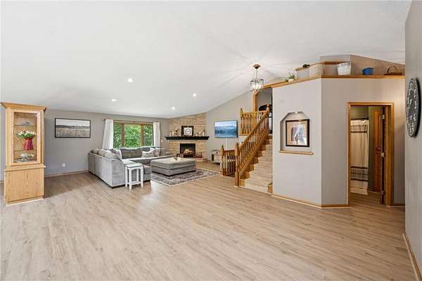 Welcome to your own private retreat! This incredible property truly has it all: peace, privacy, and recreation in a stunning natural setting. Backing up to the Sherburne National Wildlife Refuge, you'll have direct access to hiking, hunting, and exploring. Enjoy year-round fishing fun in the private, aerated pond stocked with crappies, sunfish, and bass. A heated and insulated 30' x 40' shop with an added 20' x 30' lean-to provides space for projects, storage, or toys. Inside, the home features a spacious main-floor entertainment area with new luxury vinyl plank flooring and in-floor heat throughout. The kitchen has been tastefully updated with new cabinetry, countertops, sink, and tile backsplash. Additional improvements include new basement flooring, a new washer and dryer, and a brand-new water heater. The outdoor space has been beautifully refreshed with updated landscaping, raspberry bushes, and apple trees, creating a peaceful and inviting setting. Relax on the patio, gather around the firepit, or cast a line in the fully stocked, aerated pond. Whether you're enjoying a quiet evening outdoors or hosting family and friends, this property offers exceptional privacy and a true connection to nature.