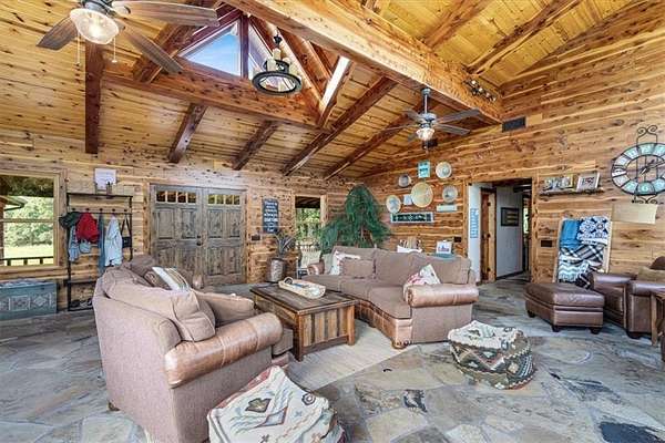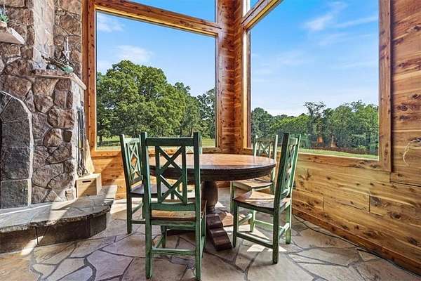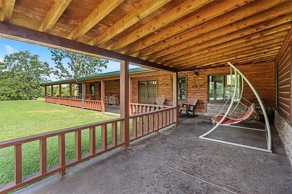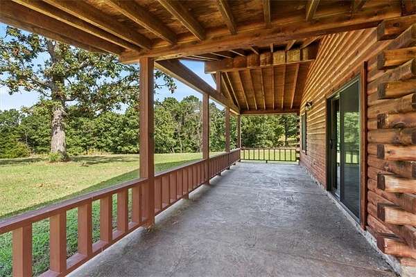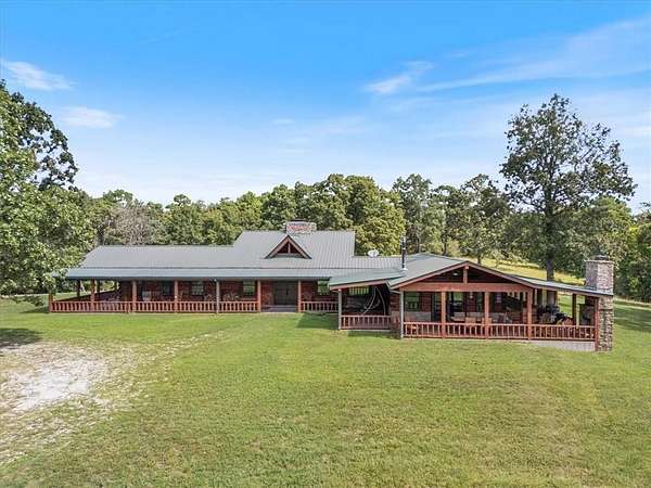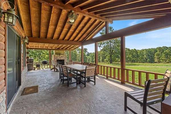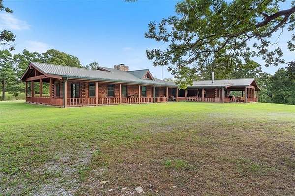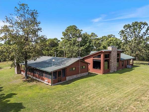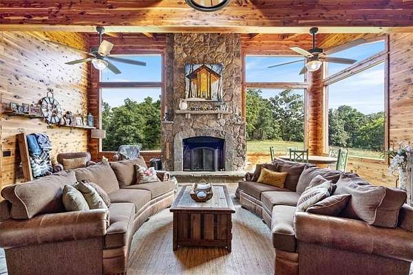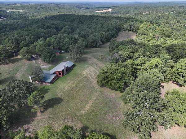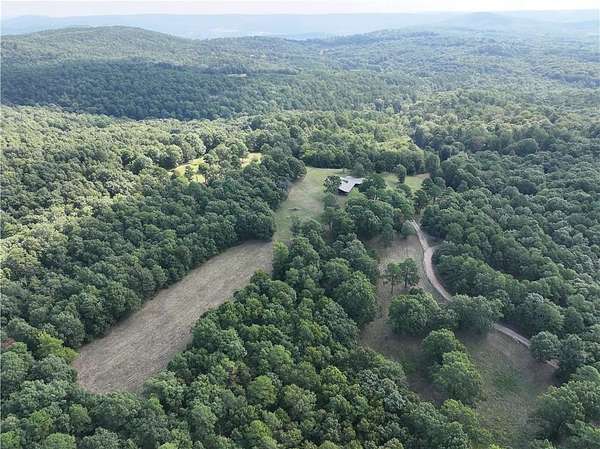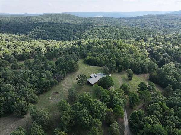 Looking for privacy, quality, and plenty of space? This is it. A 5-bedroom, 3.5-bath home, solidly built by Mennonites, on 67.19 private acres. Inside, the main room is stunning with high cathedral ceilings and a giant rock fireplace. The home is full of beautiful cedar wood finishes and has stone and wood floors. The 2,204 sq ft layout gives everyone their own space. The best spot might be the wrap-around porch, which has its own outdoor fireplace. It's perfect for enjoying the outdoors in comfort. Located privately off the highway but still close everything Northwest Arkansas, this property offers the best of both worlds. A solid home with room to grow and land to call your own. Don't miss out on this one.