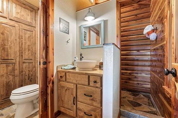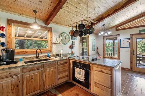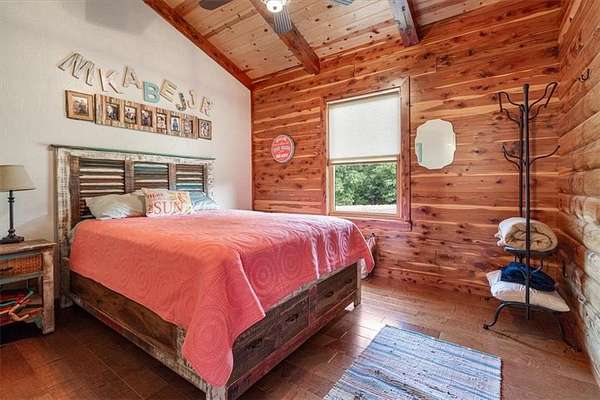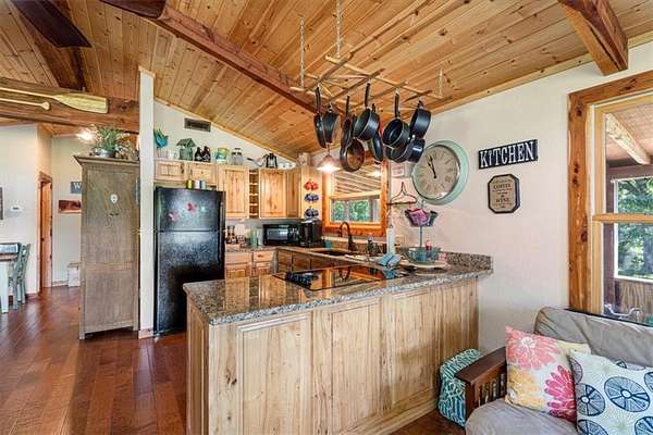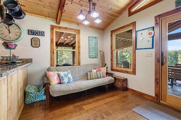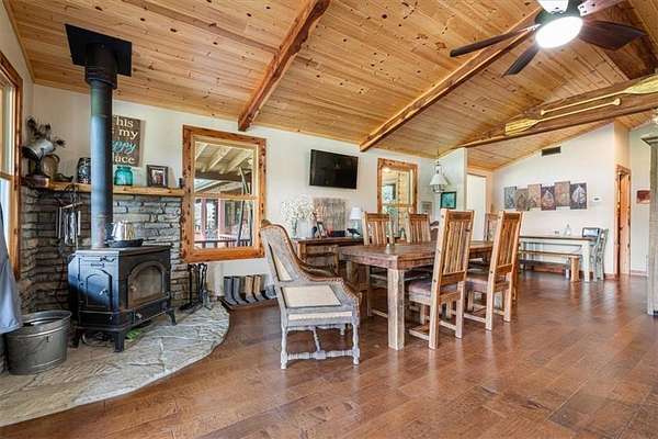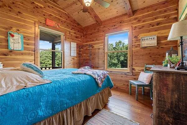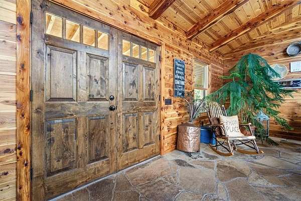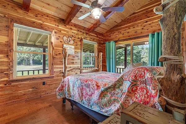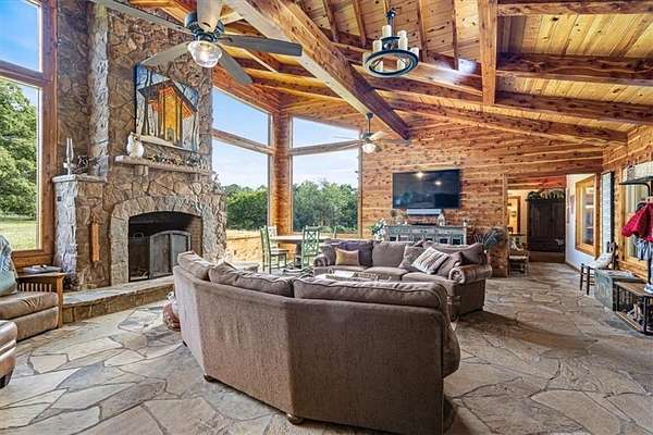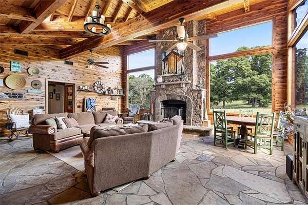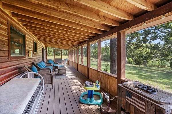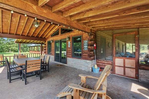 Looking for privacy, quality, and plenty of space? This is it. A 5-bedroom, 3.5-bath home, solidly built by Mennonites, on 67.19 private acres. Inside, the main room is stunning with high cathedral ceilings and a giant rock fireplace. The home is full of beautiful cedar wood finishes and has stone and wood floors. The 2,204 sq ft layout gives everyone their own space. The best spot might be the wrap-around porch, which has its own outdoor fireplace. It's perfect for enjoying the outdoors in comfort. Located privately off the highway but still close everything Northwest Arkansas, this property offers the best of both worlds. A solid home with room to grow and land to call your own. Don't miss out on this one.