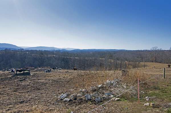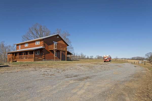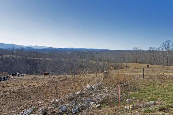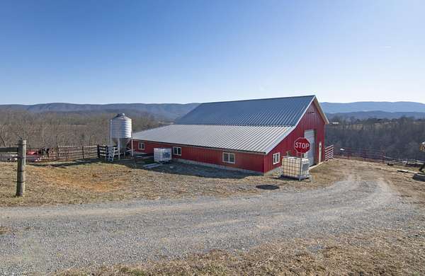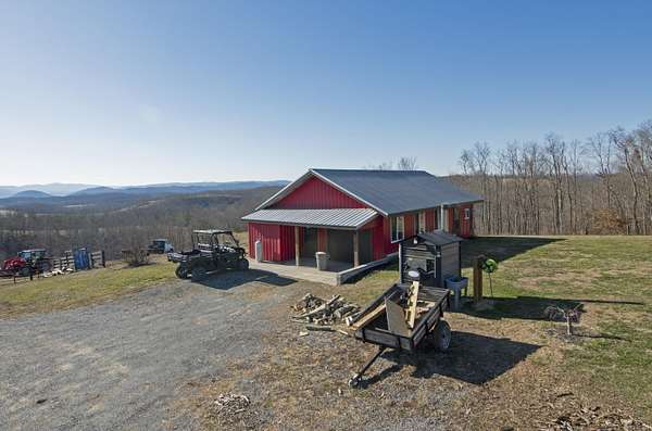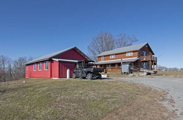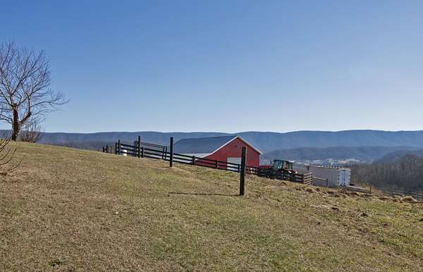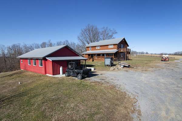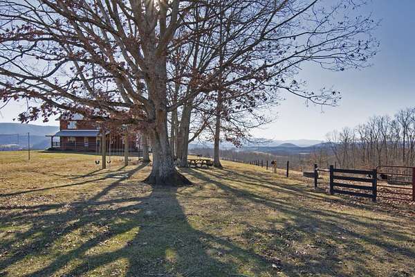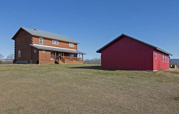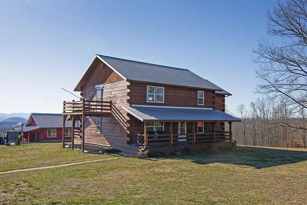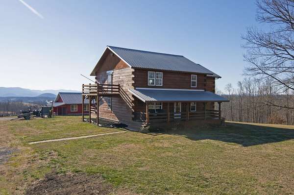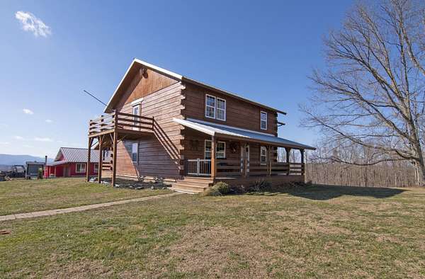 Privately situated on 18.57+/- acres in Monroe County, this log home offers sweeping mountain views, functional acreage, and a versatile layout suited for full-time living or a private retreat. The property provides excellent privacy while maintaining easy access. Covered front and back porches, along with an upper-level balcony, capture stunning long-range mountain views. Hardwood floors run throughout the home, which includes three bedrooms and two full baths, with a bedroom on the main level allowing for convenient one-level living. Fenced and cross-fenced pasture, multiple outbuildings, and a well-established garden support agricultural use or hobby farming. The main level is thoughtfully designed with a comfortable living room, an eat-in kitchen, and a separate dining area well suited for everyday living and entertaining. A spacious laundry and storage room adds functionality, while the main-level primary bedroom and full bath provide ease and accessibility. The warmth of hardwood floors and log construction is carried throughout the home, creating a welcoming and timeless feel. The upper level offers additional living space with a second living room and access to a deck-style balcony overlooking the surrounding mountains. Two bedrooms and a full bath with dual sinks, a separate shower, and a jetted tub are located on this level. One of the bedrooms connects to an adjoining room that could be used as a sitting area, office, craft room, or other flexible space, allowing the layout to adapt to a variety of needs. The land is well equipped for agricultural use, recreation, or simply enjoying open space, with fencing and cross-fencing already in place. A barn with electric includes separate rooms for milking and meat cutting, supporting livestock or small-scale production. Near the home, an additional outbuilding features a garage door and a large interior space that could serve as a garage, workshop, or gathering area, along with a dedicated canning room complete with shelving for storage. Another outbuilding near the garden provides additional storage, while the garden itself offers both open and raised beds and is fully enclosed with chain-link fencing.
