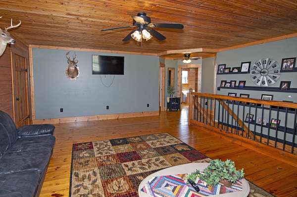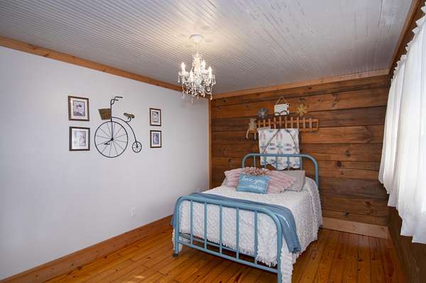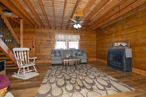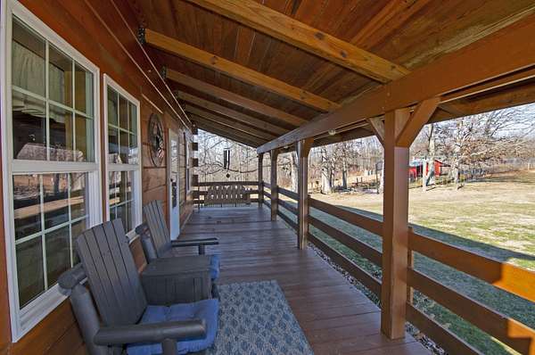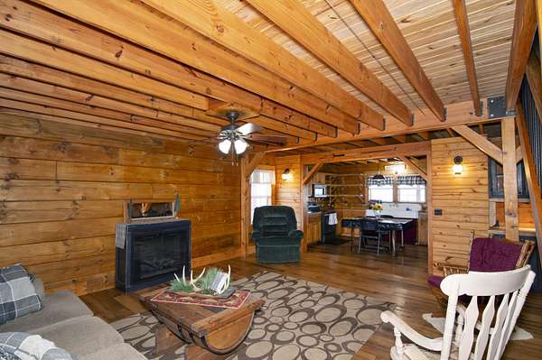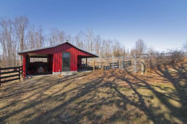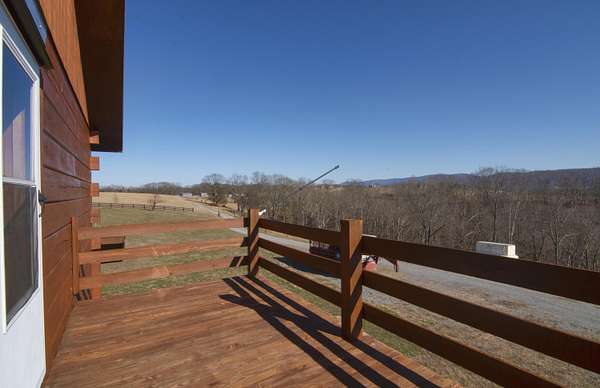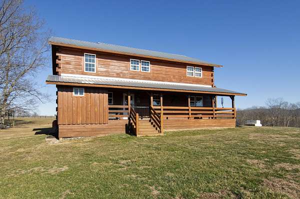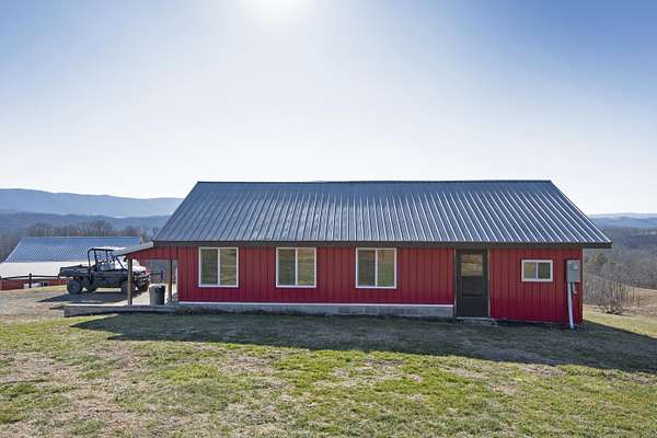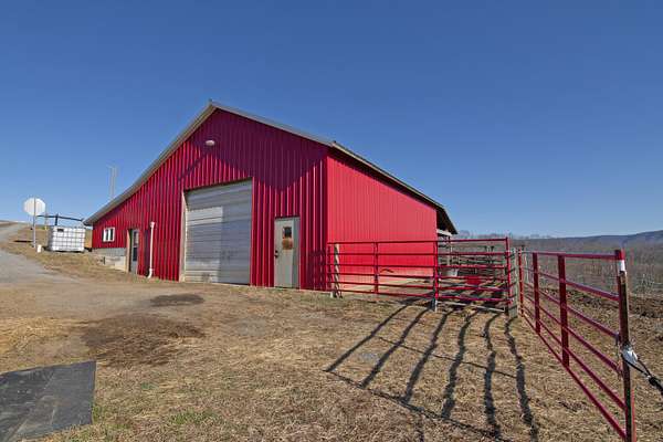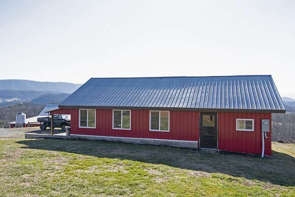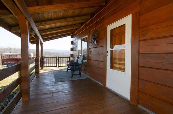 Privately situated on 18.57+/- acres in Monroe County, this log home offers sweeping mountain views, functional acreage, and a versatile layout suited for full-time living or a private retreat. The property provides excellent privacy while maintaining easy access. Covered front and back porches, along with an upper-level balcony, capture stunning long-range mountain views. Hardwood floors run throughout the home, which includes three bedrooms and two full baths, with a bedroom on the main level allowing for convenient one-level living. Fenced and cross-fenced pasture, multiple outbuildings, and a well-established garden support agricultural use or hobby farming. The main level is thoughtfully designed with a comfortable living room, an eat-in kitchen, and a separate dining area well suited for everyday living and entertaining. A spacious laundry and storage room adds functionality, while the main-level primary bedroom and full bath provide ease and accessibility. The warmth of hardwood floors and log construction is carried throughout the home, creating a welcoming and timeless feel. The upper level offers additional living space with a second living room and access to a deck-style balcony overlooking the surrounding mountains. Two bedrooms and a full bath with dual sinks, a separate shower, and a jetted tub are located on this level. One of the bedrooms connects to an adjoining room that could be used as a sitting area, office, craft room, or other flexible space, allowing the layout to adapt to a variety of needs. The land is well equipped for agricultural use, recreation, or simply enjoying open space, with fencing and cross-fencing already in place. A barn with electric includes separate rooms for milking and meat cutting, supporting livestock or small-scale production. Near the home, an additional outbuilding features a garage door and a large interior space that could serve as a garage, workshop, or gathering area, along with a dedicated canning room complete with shelving for storage. Another outbuilding near the garden provides additional storage, while the garden itself offers both open and raised beds and is fully enclosed with chain-link fencing.