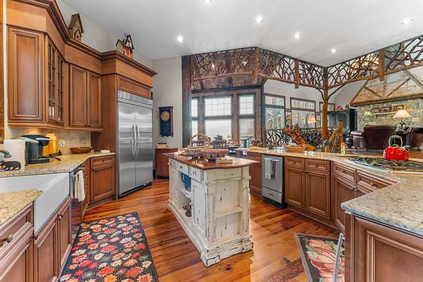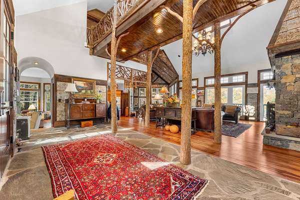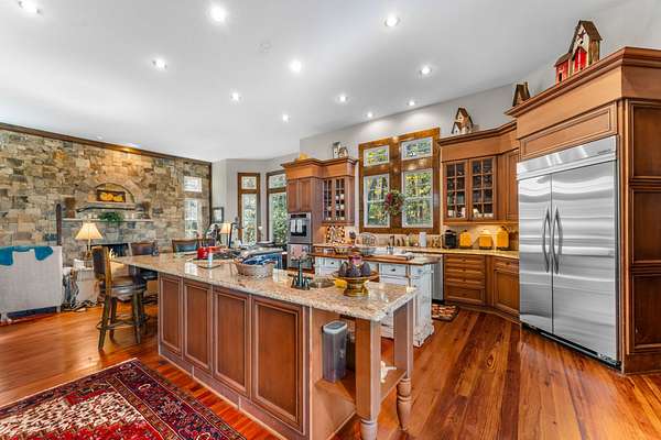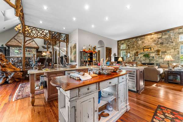 Ravenel Ridge Check out this Quality home located in the gated community of Ravenel ridge, a 31 lot enclave in the heart of Highlands. The house is spacious. 4 bedrooms, 4.5 baths and has a detached garage with guest apartment. Heart of Pine Floors in the main level with vaulted, high scales to give it a spacious warm feel. Great room Family/Kitchen room has an entire wall dedicated to the stone fireplace and opens onto a huge, covered gazebo porch with fireplace to enjoy the mountain view. Primary has a large limestone floored bath with double vanities. Upper level has 3 guest suites separated by a catwalk bridge for guests' privacy. Great entertaining house and the most reasonably priced in Ravenel.