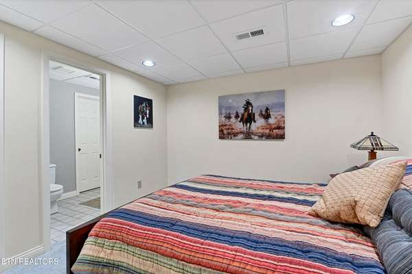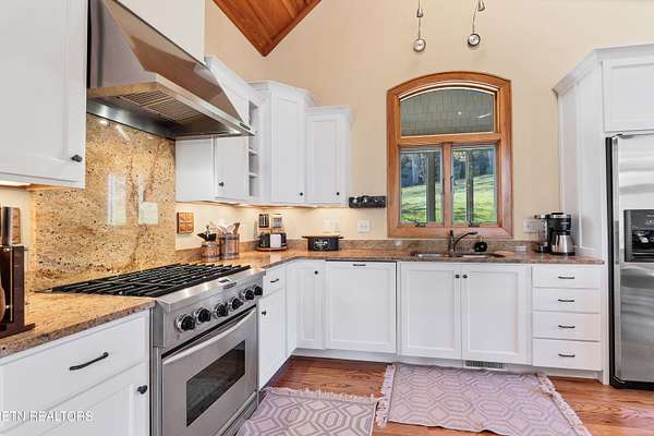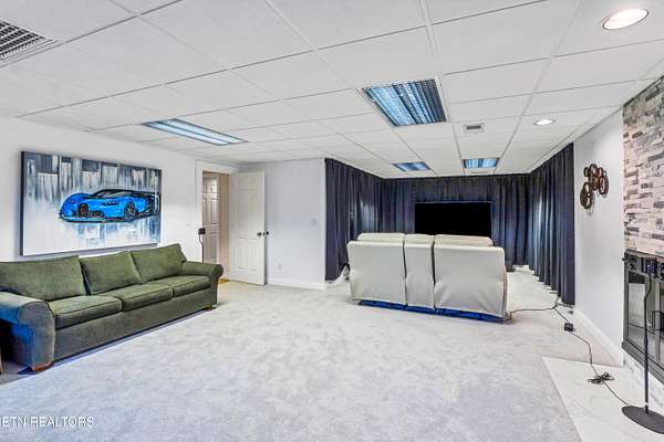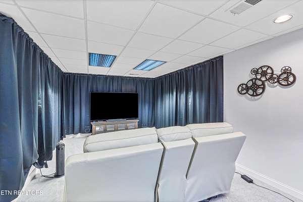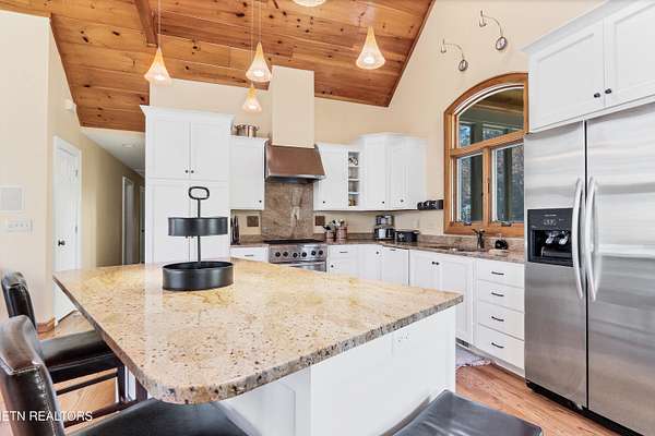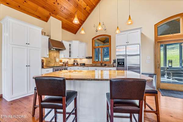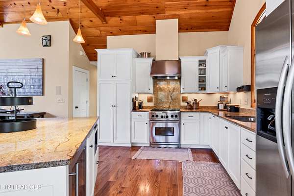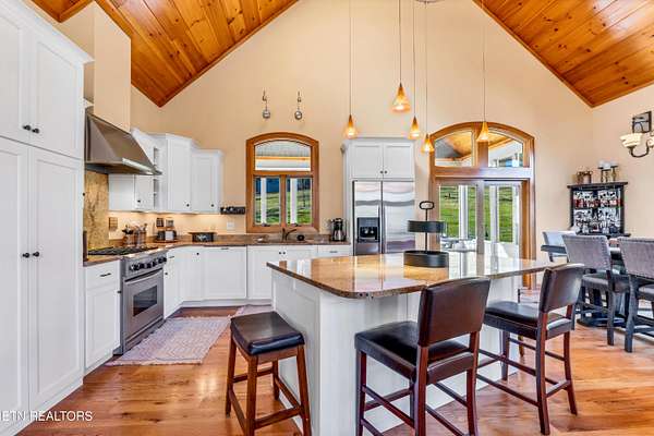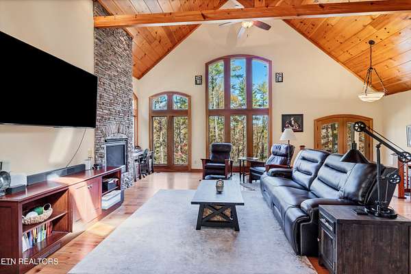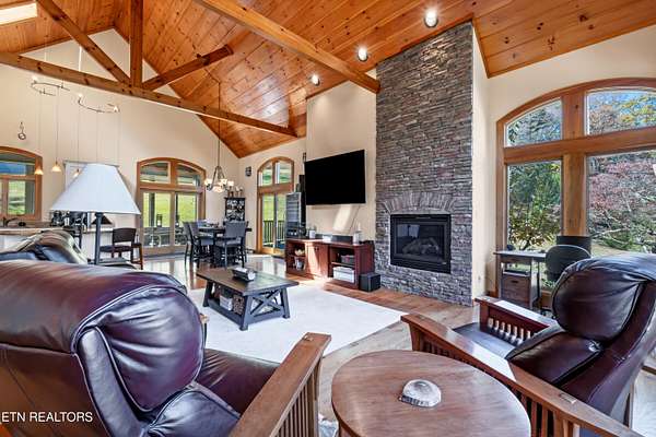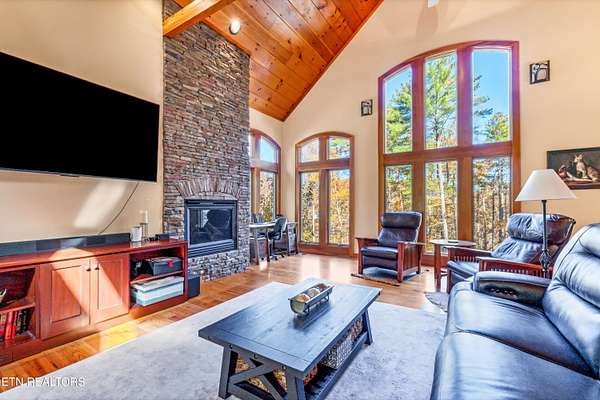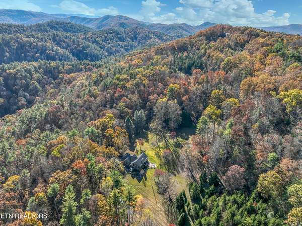 OWN YOUR OWN PRIVATE & SECLUDED MOUNTAIN - 20+ Unrestricted Acres on the Peaceful Side of the Smokies! Tucked away in a breathtaking National Park-like setting with gorgeous mountain views, including direct sight lines to Clingman's Dome. Enjoy absolute privacy, abundant wildlife, built-in hiking trails, all with no HOA and the potential for additional home sites or use as an Airbnb with county approval. Main-Level Living at its Finest: Step inside the custom double entry doors to soaring tongue & groove wood ceilings, exposed wood beams, hardwood floors, and an abundance of natural light. The open floor plan flows seamlessly from the large great room with stone gas fireplace to the chef's eat-in kitchen featuring granite countertops & backsplash, stainless KitchenAid gas range, warming drawer, beverage fridge, custom cabinetry, huge island with breakfast bar, and pendant lighting. The spacious owner's suite on main offers a sitting area, see-through gas fireplace, double walk-in closets, private deck access and a luxurious en-suite bath with double-headed tile shower, jetted tub, Kohler double vanity, and private water closet. Two additional main-level bedrooms, a guest bath with granite and walk-in tile shower, plus a show-stopping covered front porch and screened rear porch (both with tongue & groove ceilings) complete the main floor. Lower Level & Bonus Spaces: The huge basement rec room with stone wood-burning fireplace is perfect for entertaining, and the brand-new 2025 mini-theatre remodel takes movie nights to the next level. A 4th room downstairs could used an additional bedroom or office. Turn-Key Opportunity: Can be purchased fully furnished with all appliances, furniture, decor, and lawn/yard equipment included -- just bring your suitcase! Minutes from Downtown Townsend, Maryville, Sevierville, Pigeon Forge, and Gatlinburg, yet feels worlds away. This is the ultimate private mountain retreat with modern luxury, timeless craftsmanship, and room to grow. Properties like this rarely come available!